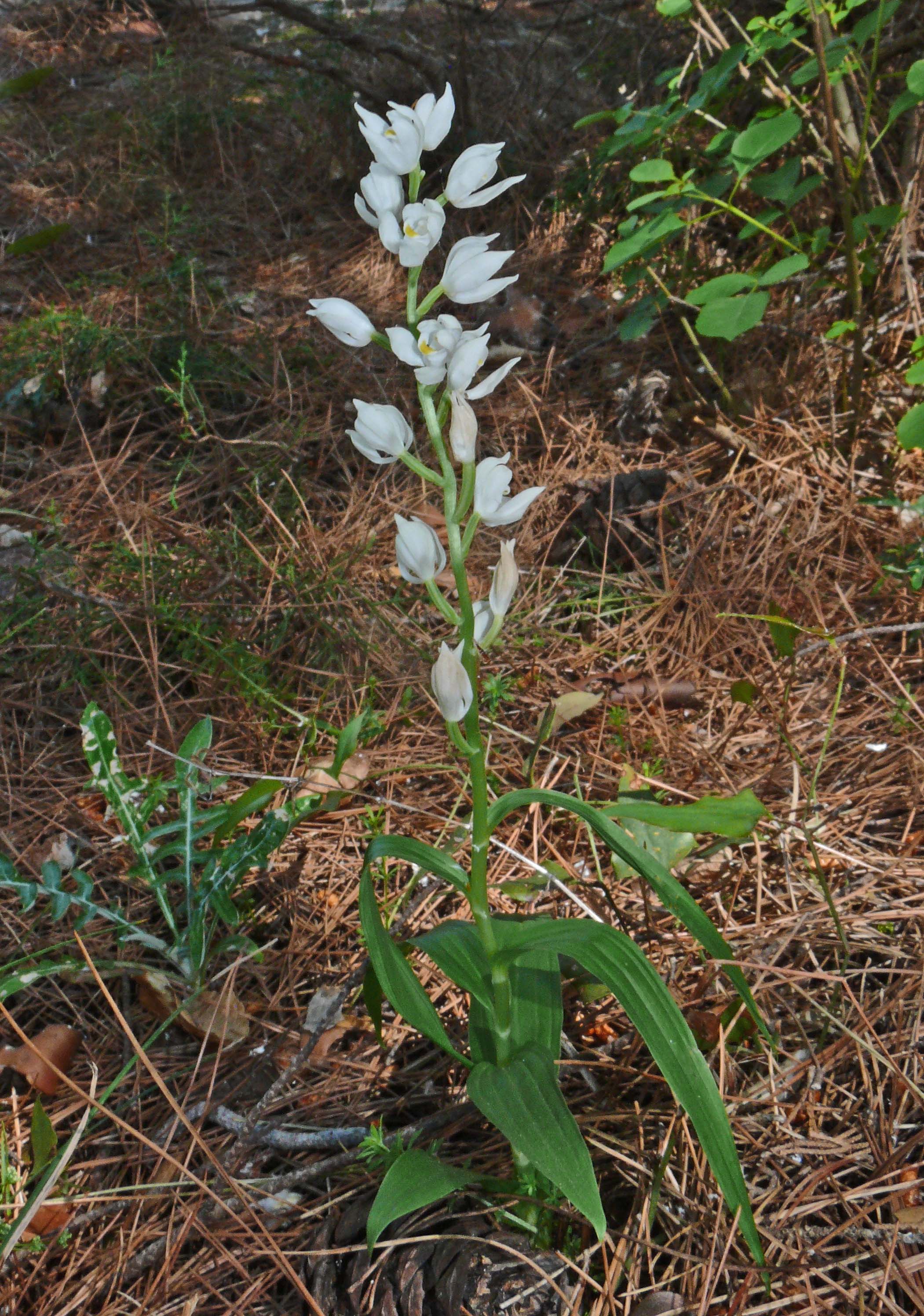 C. conferta was first described as a subspecies by B and H Baumann from Lebanon in 2004 and subsequently promoted to full species status by Kreutz the following year. This species is at its most common in the near East countries of Lebanon, Syria, Israel, Turkey and Jordan and therefore outside the remit of this site. It does however have outposts on the Greek islands of Lesbos and Samos where it is not at all uncommon and particularly at higher altitudes. The pictures are all from Samos where its close relative C. longifolia is present but extremely rare. Distinguishing the two is not easy but as with many orchids, in their typical form the process becomes easier. C. conferta tends to have a more compact inflorescence with leaves that are more closely spaced and broader with a pronounced boat cross section as opposed to the flatter profile of C. longifolia. These leaves also sit horizontally to the stem rather than upward pointing. The Samos examples pictured here do not reflect the compact inflorescence particularly well but the characteristic leaf formation is effectively portrayed. Even populations in Lebanon where it is at its most abundant, do not always display the more crowded flower spike and more closely resemble C. longifolia. Flowering commences in the first week of April but can be as early as mid March in the warmer parts of its range. As already mentioned, this species seems happiest at higher elevations where it seeks partial or even full shade, invariably on calcareous substrates. On Samos its preferred habitat is roadside verges in open montane pine woodland. The pictures date from the last week of April at which time the plants were in full flower.. |