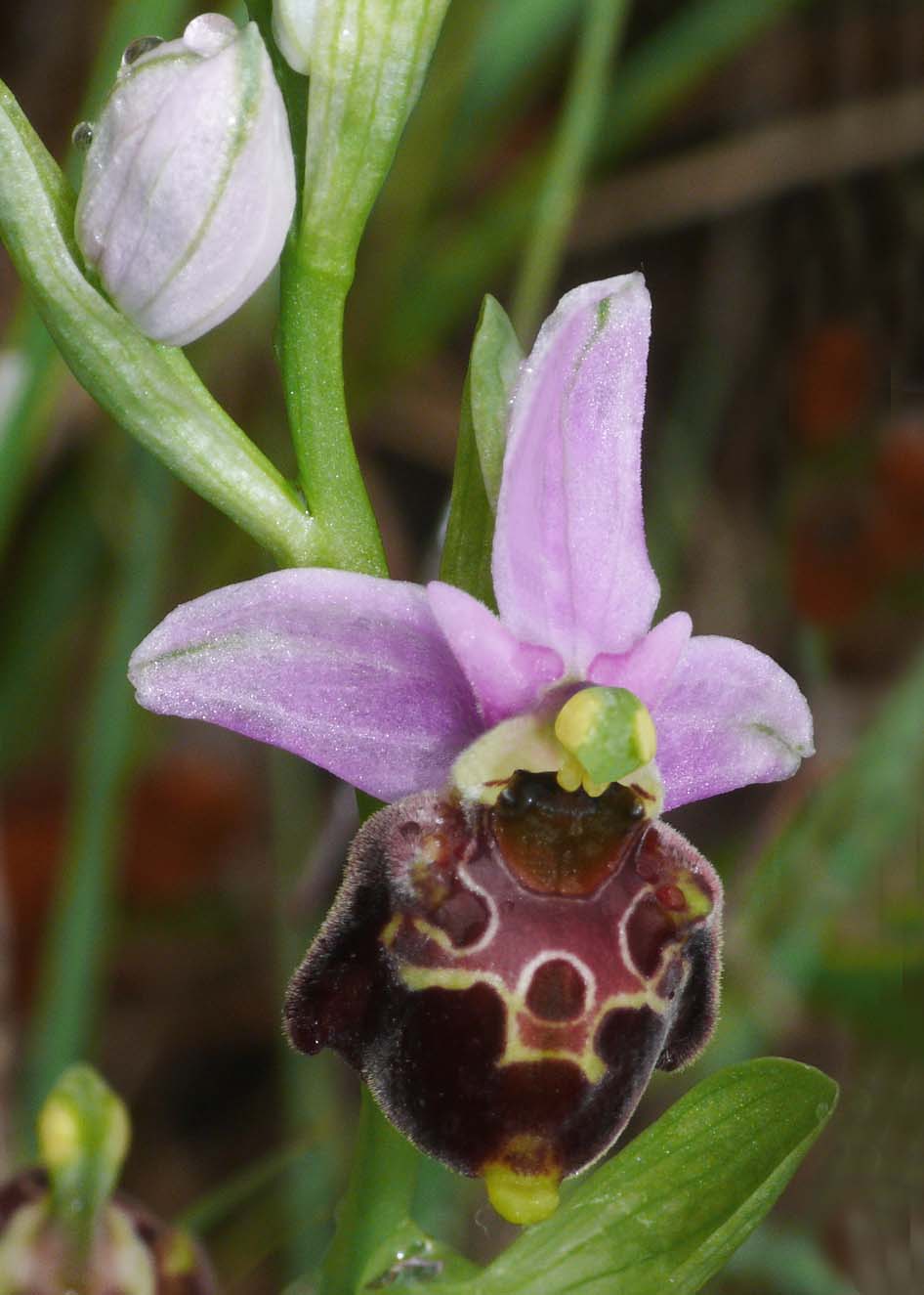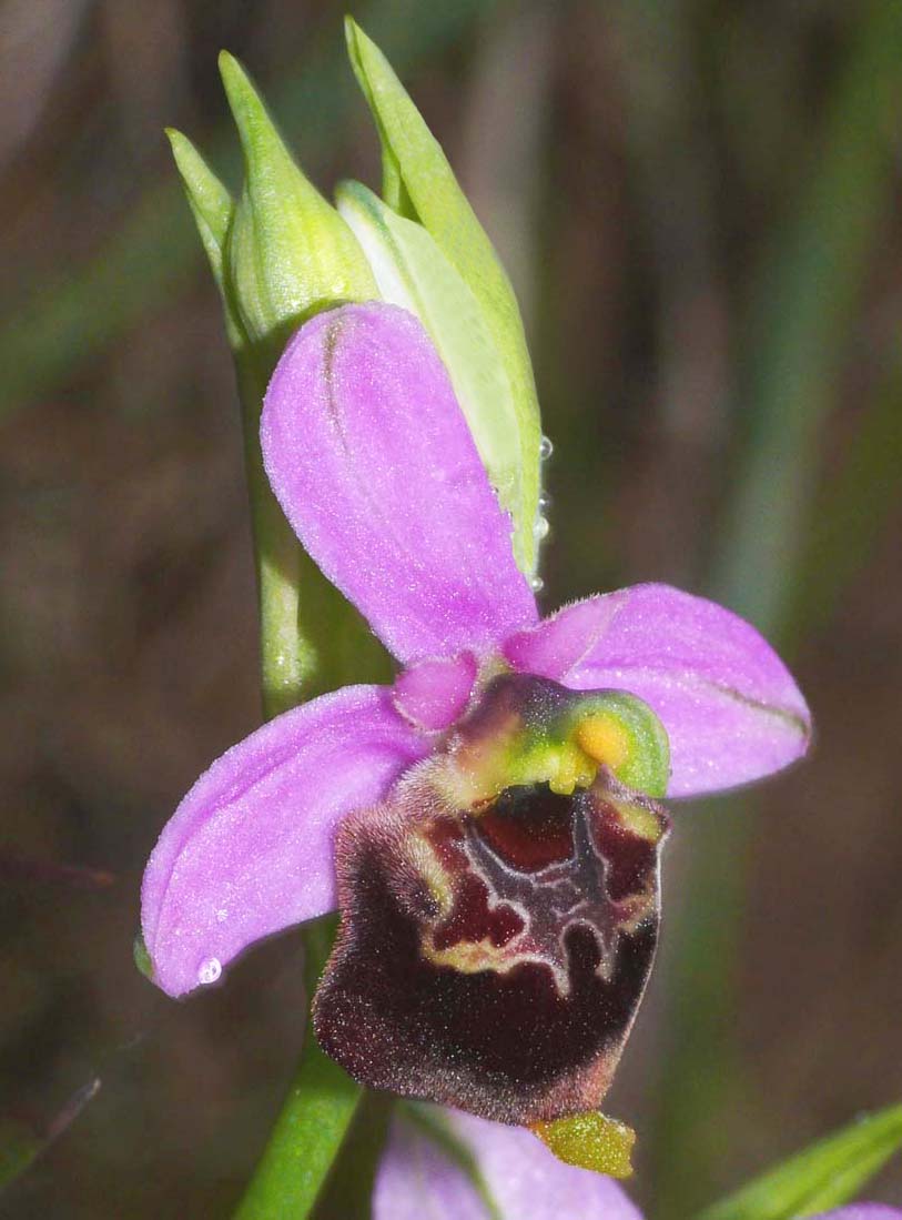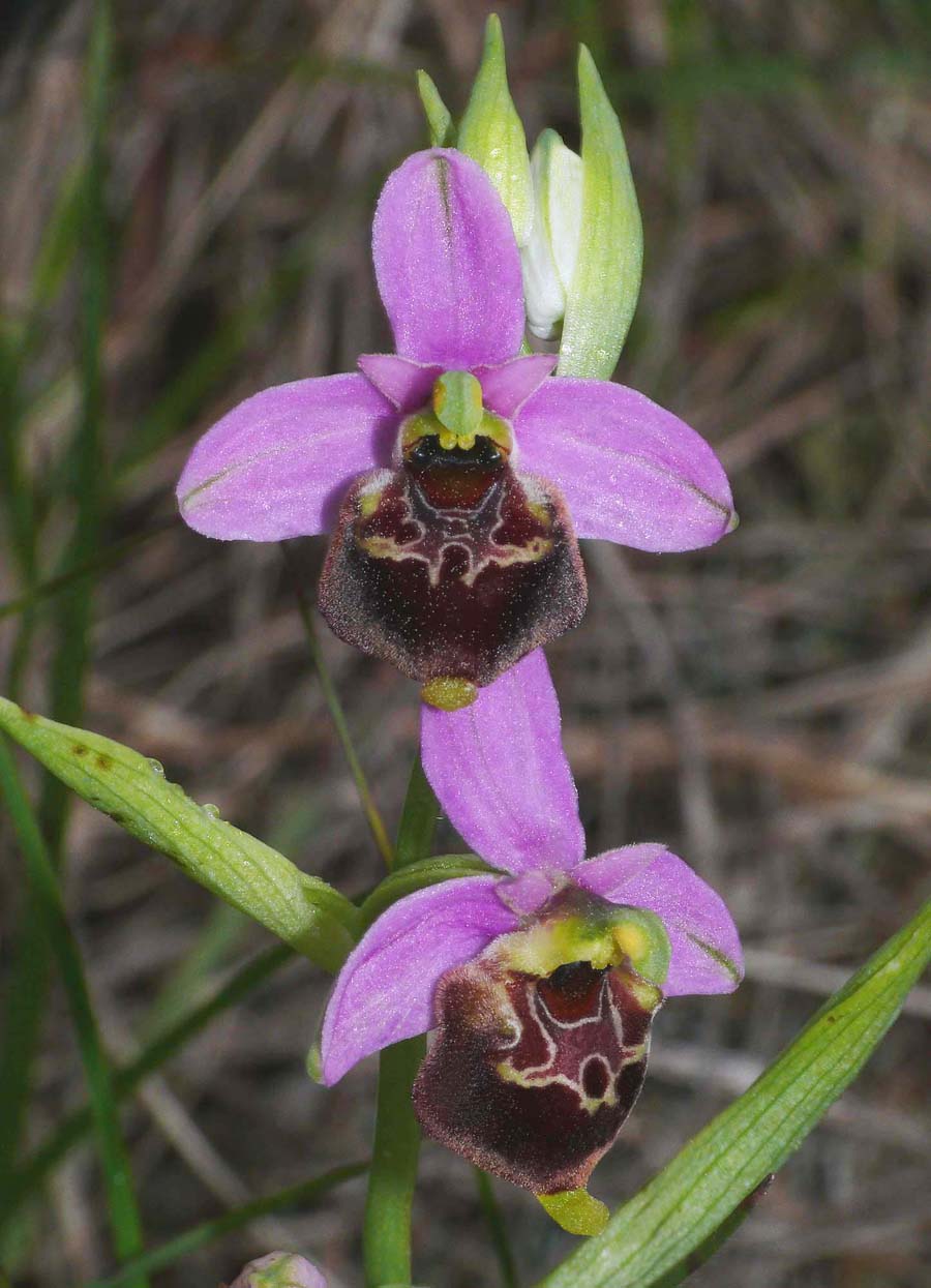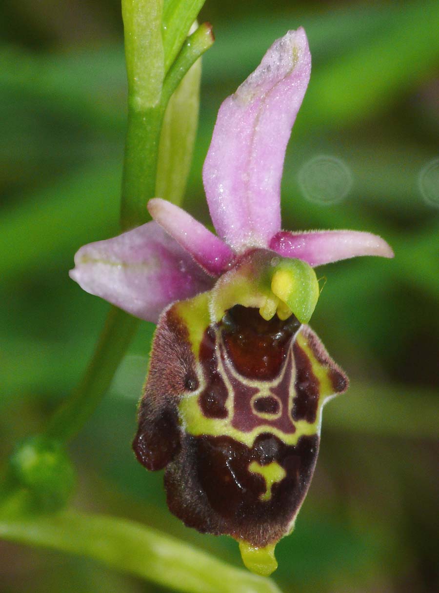 O. brachyotus was first described by Reichenbach from Genoa ( Italy) in 1830 and its name is a reference to the short petals exhibited by this species. It should perhaps be mentioned however, that as can be seen in picture three, the petals do not always fit the description of short and can in some cases be up to a third of the length of the sepals. It is one of the commoner members of the O. tetraloniae group and its home is the sub-Mediterranean areas of southern France and northern Italy. The species can reach as far north as Switzerland, but it is probably at its most frequent in the Maritime Alps and Alpine foothills of central southern France. The status of O. brachyotus as a valid species has been questioned for many years and little unanimity has been achieved, with the result that some authors consider it be synonymous with O. gresivaudanica and do not inlclude it in they're species lists. As with most members of this group, identification is not easy and there are several other species with which it may be confused, not least O. gresivuadanica. The most important feature of this particular species and the group generally is the characteristic, complete band of submarginal hair encircling the labellum. Lip shape is highly variable and can range from fuciflorid to scolopaxoid, though the former is much the more common. The perianth is normally pink and the petals often darker, particularly at the base. It is a medium sized flower, significantly larger than O. gresivaudanica and the inflorescence can contain as many as 12 individuals. O. brachyotus also differs from the latter in its phenology, first appearing in mid May and flowering through to mid June. The photographs are from several lower alpine valleys south of the Vercors and in Alpes-Maritmes, dating from the first week of June. |