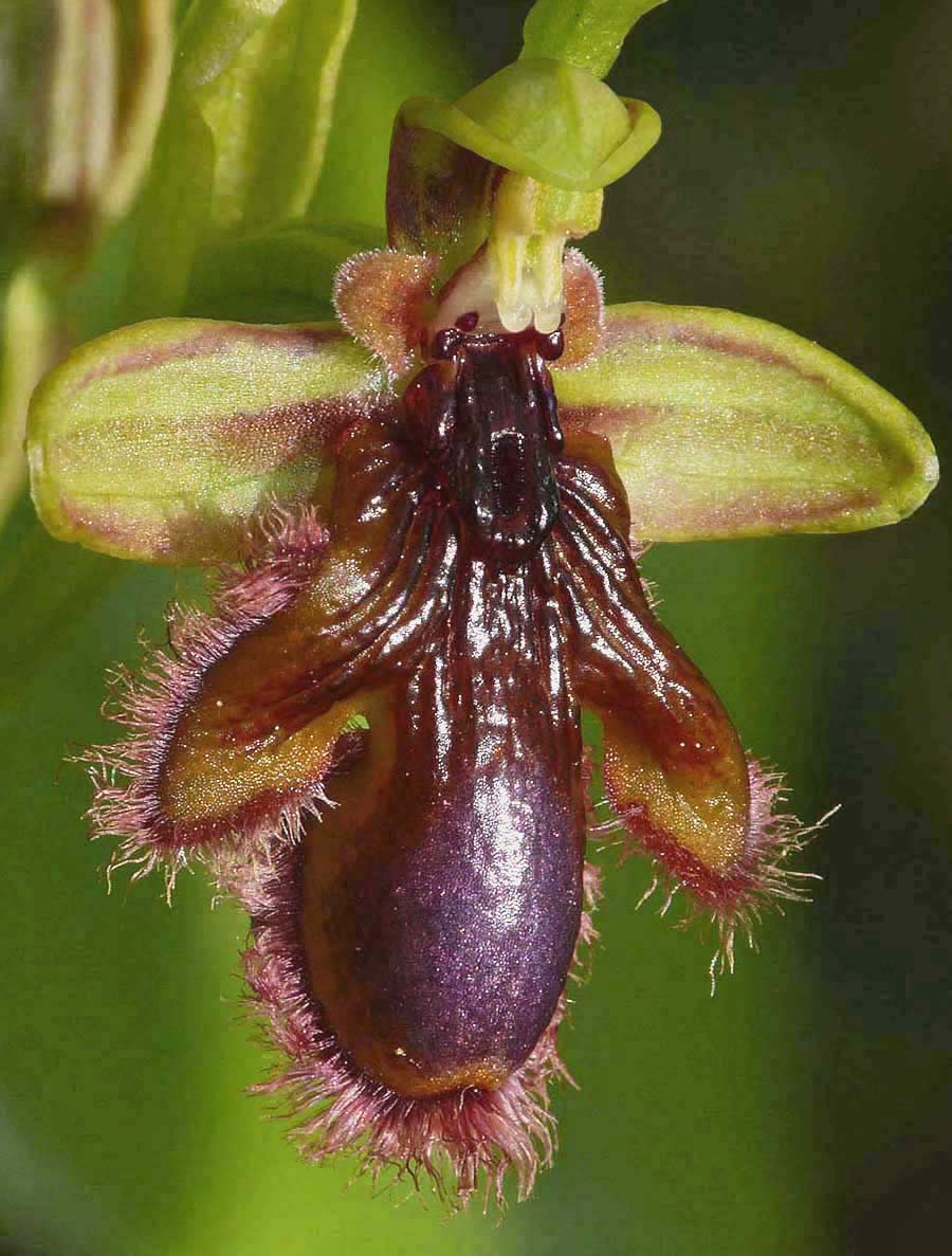 was ultimately described from Portugal by Paulas and Gack in 1990, having first been recognized by Brothero as O. vernixia as long ago as 1804. It is a member of the small O. speculum group