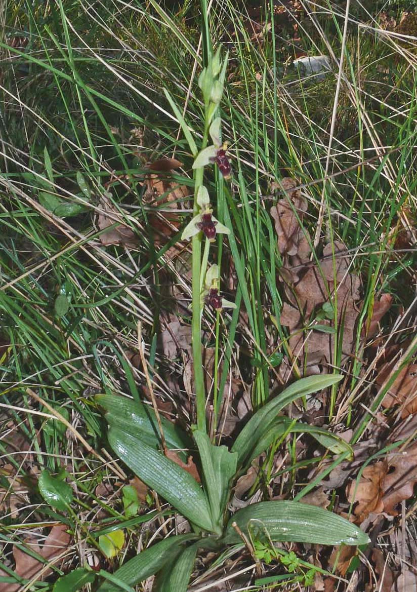 O. nestoris was described by Presser and Hertel in 2018, having previously been incorrectly positioned as a subspecies within the primarily western Mediterranean O. scolopax group. It is in fact a member of the O. oestrifera clan and named after the Palace of Nestor which was close to the site of the species original discovery by Alibertis and Brutsch in southern Messenia. Recent years have seen changes and additions of new species being added to the Greek list of scolapaxoid Ophrys and correctly separating these taxons becomes ever more complicated. O. nestoris is however one of the more distinctive new discoveries when in its typical form, this being dark lipped with green or green washed sepals and very short petals. Needless to say and as can be seen from the pictures however, the species doesn't always conform to the type description, though the tiny petals appear to be a fairly reliable diagnostic characteristic. Sepals can sometimes be pale pink although rarely the vivid shade of some its O. oestrifera group cousins. The basal swellings can also vary in form from small bears ears to well developed outward pointing horns. The flowers are small but the plant is often sturdy and as will be noted from the sixth picture, the basal leaves can be strikingly robust. This is an extremely rare species where even the small number of known colonies can support less than ten individuals. The photographs come from sites near Megolopoli and the Locus typicus on the outskirts of the village of Gargaliani. In both cases the plant count was in single figures, although it should be noted that on the 13th of April 2023 they were only just getting into their stride. |
