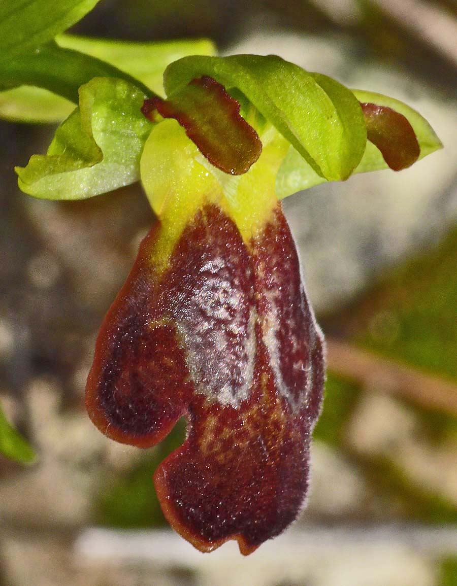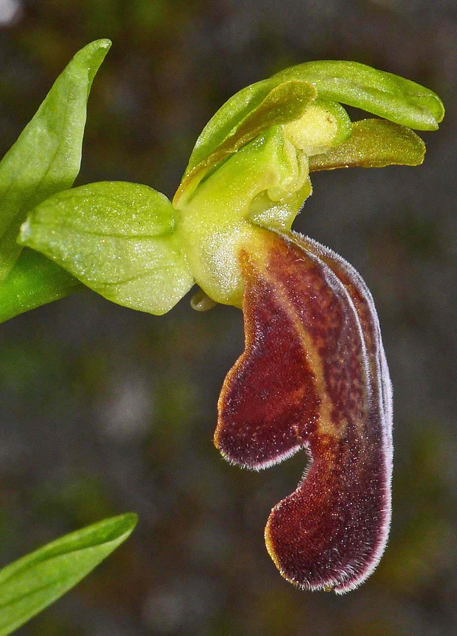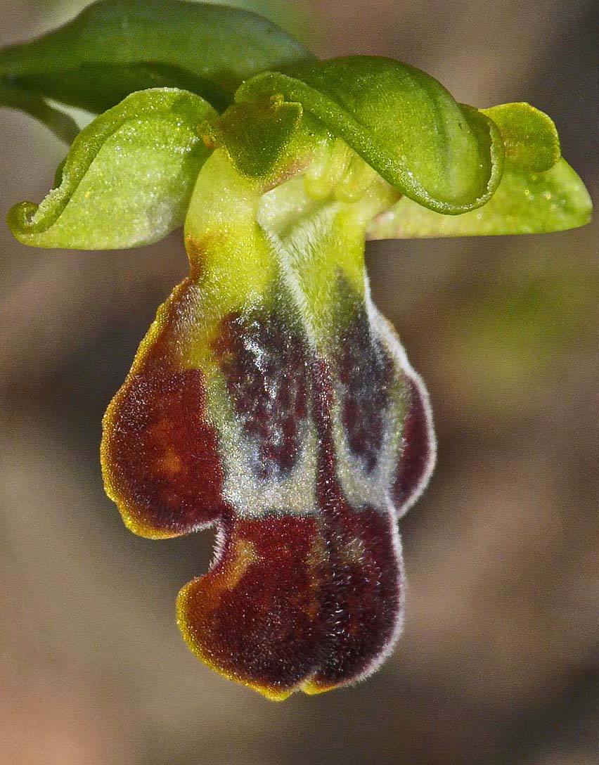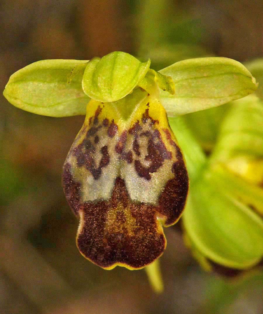 O. parosica was first described by Delforge from Paros in 1995 and is a member of the O. attaviria group of Ophrys. This species together with O. phaseliana and the more recently described O. pelinaea have been presenting taxonomic challenges for over a decade now, most particularly in terms of conspecificy but also the question of their very presence in the eastern Aegean. In 2006, Delforge acknowledged the possibility of conspecificy but nonetheless described O. parosica and O. phaseliana as separate species, both to be found in the islands of the eastern Aegean. His opinion subsequently moved to a reduction of O. phaseliana's status to one of variety (O. parosica v phaseliana). Further research by Paulus and Hirth (2015) does not accord with this view and recommended reclassification of both these species (together with O. meropes and O. theophrasti) from the eastern Aegean as O. pelinaea. Confirming O. parosica to be restricted to the Cyclades and O. phaseliana to south west Turkey, the latter therefore outside of the scope of this site. The situation has now settled into an understanding that O. phaseliana is restricted to Turkey, O. pelinaea is an individual and widespread species and O parosica is also a full species with a range through much of the Aegean. The illustrations are from Chios and Samos and depict plants with the typical marbling, yellow lip margin and open sinuses that are so characteristic of O. parosica. They date from the first week of April. |
