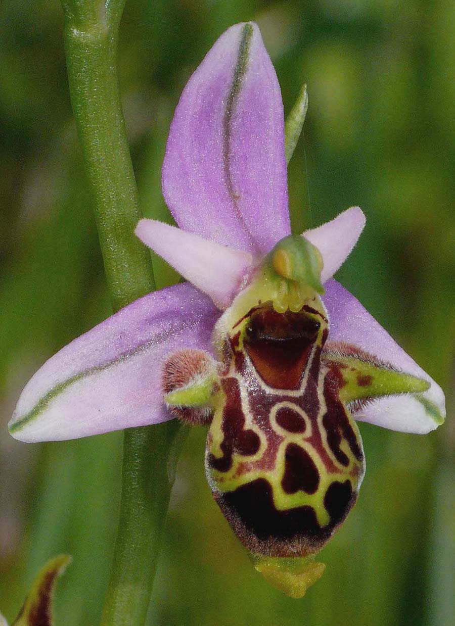O. polyxo was first described from Laerma. Rhodes by Mast de Maeght, Garnier, Devillers and Devillers-Terschuren in 2005. It is a member of the eastern Mediterranean based O. heldreichii group of Ophrys and is named after Polyxo, erstwhile Queen of ancient Rhodes. The 2005 study concluded that plants formerly recognized as the species O. ceto and O. bremifera of the O. oestrifera group were in fact a separate species within the O. heldreichii group. O. polyxo is thought to be of hybridogenous origin with O. cornutula as a parent and this would certainly account for the difficulties that can be encountered with separating the two Rhodian endemics. A great deal of study has been concentrated on the Greek Ophrys genus over the last few years and results are not always easy to assimilate, either in the field or photographically. Neither species is uncommon on the island and intermediates are regularly recorded so the description that follows should be read with that in mind. O. polyxo is a sturdy, fairly tall plant, usually with six or less flowers spaced alternately up the stem in a vaguely one sided pattern. The flower is somewhat larger and more rotund than O. cornutula with a more elaborate, sometimes gaudy speculum. Significantly, petals are long, being up to half the length of the sepals. Flowering is at least two weeks later. The photos are from Rhodes, dating from the commencement of flowering in early April. |