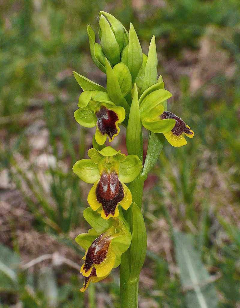 Anacamptis laxiflora Gennaria diphylla Epipactis lusitanica Epipactis tremolsii Himantoglossum hircinum Himantoglossum robertianum Ophrys bombyliflora Ophrys dyris Ophrys fusca Ophrys ficalhoana Ophrys quarterae Ophrys scolopax Ophrys speculum Ophrys tenthredenifera Ophrys tenthredenifera v praecox Ophrys vernixia Orchis olbiensis Orchis langei Orchis mascula Serapias lingua | ![]() |