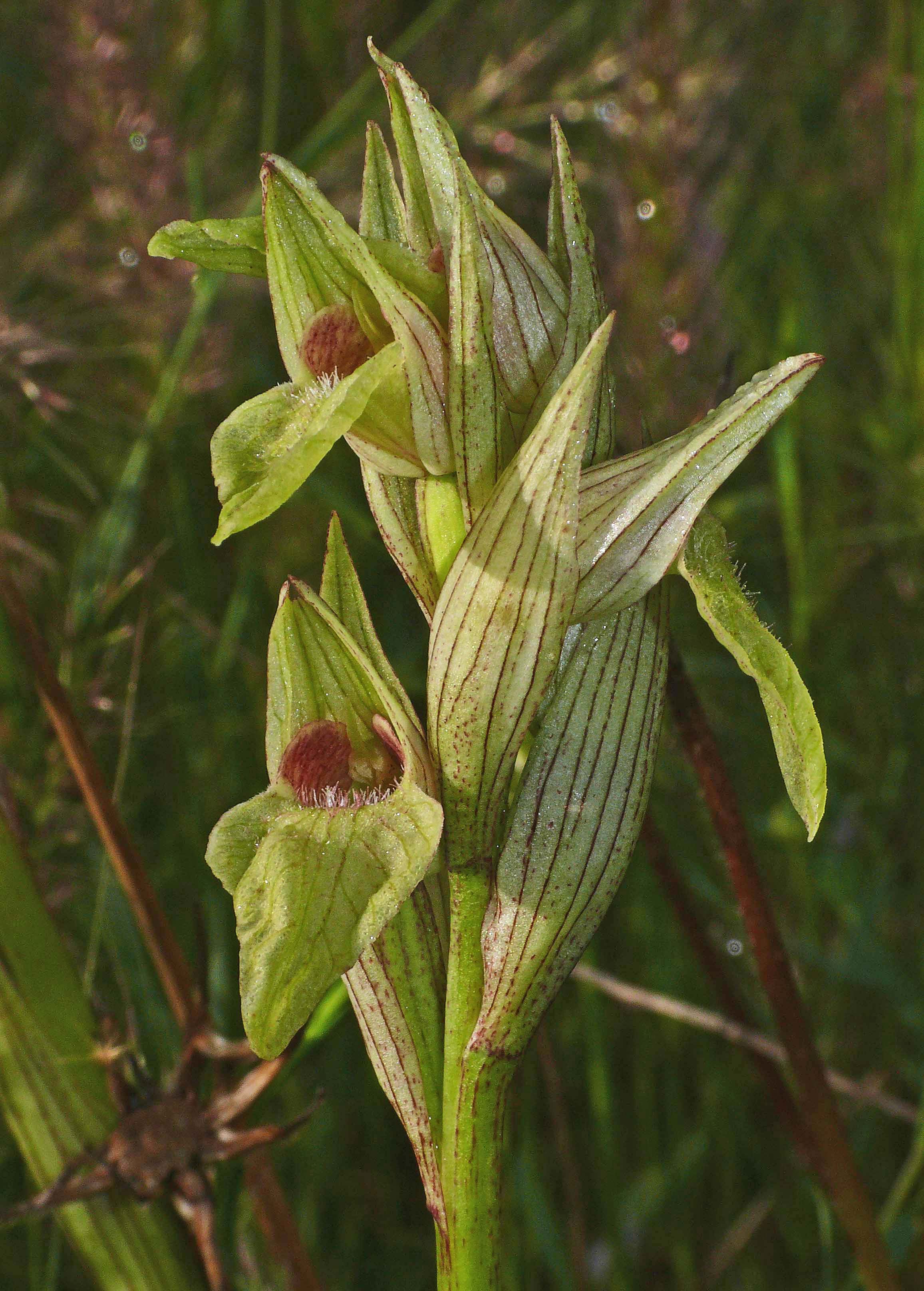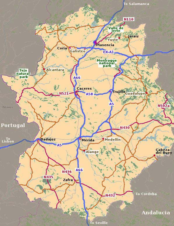 Areas of interest * Dehesa de Moheda Alta Whilst Extremadura still offers the orchid enthusiast an interesting range of species, much of its formerly wild habitat has been lost to agriculture, predominantly fruit production and large areas are heavily fenced. For this reason National Parks and reserves are perhaps the best chance of seeing some of the regions botanical specialities. One such reserve is the Dehesa de Moheda Alta and is situated just to the north of Navalvillar de Pela on the EX-116. Orchids cannot be described as abundant here and time needs to be devoted to their discovery, the reserve is however home to virtually all the Serapias species of the area. Serapias cordigera, Serapias parviflora, perez-chiscanoi, Serapias occidentalis, Searapias vomeracea, Serapias lingua, Serapias elsae. * San Pedro de Merida From the village take the BA-125 south towards Valverde de Merida and after a kilometre or so the surrounding terrain becomes scrubby and uncultivated. As with the reserve above, orchids are not plentiful but the damper areas can produce a good range of species. Ophrys speculum, Ophrys lutea, Ophrys tenthredenifera, Ophrys scolopax, Anacamptis laxiflora, Anacamptis papilionacea, Orchis langei, Serapias lingua, Serapias perez-chiscanoi, Serapias elsae, Serapias strictifolia. * Parque Nacional de Monfrague This is a National Park that lies to the north of the town of Trujillo and offers some stunning mountain and lake scenery. Although most famous for its bird life, it is home to many species of orchid, many of which will not be found in the damp Dehesa to its west. Ophrys fusca, Ophrys lutea, Ophrys tenthredenifera, Ophrys speculum, Anacamptis laxiflora, Anacamptis papilionacea, Anacamptis morio, Neotinea conica, Limodorum abortivum, Orchis langei, Orchis mascula, Spiranthes aestivalis, Serapias lingua. * Cabanas del Castillo This is a village some 10 kms north west of Gaudaloupe and is a good base from which to explore the foothills and mountain valleys that occupy this extreme eastern district of Extremadura. The walk south from the village is rewarding from both a scenic and botanical point of view but most of the surrounding countryside is also of great beauty and interest. Ophrys fusca, Ophrys lutea, Ophrys tenthredenifera, Ophrys speculum, Anacamptis laxiflora, Anacamptis papilionacea, Anacamptis morio, Neotinea conica, Limodorum abortivum, Orchis langei, Orchis mascula, Spiranthes aestivalis, Serapias lingua. | ||