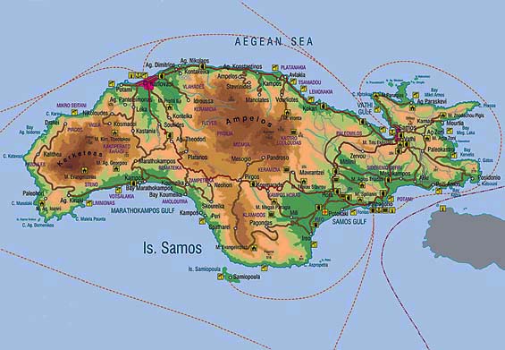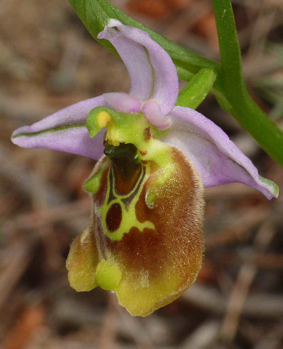 Areas of interest * Mount Kerkis This is the highest mountainous area on the island but the peak itself can only be accessed by a considerable trek on foot. The surrounding foothills however are rich in orchids and can be reached relatively easily via a network of small roads that interlink the small towns and villages around the base of the mountain. The villages of particular interest include Marathokambos, Agios Kyriaki and Mourteri. Orchis pinetorum, Orchis anatolica, Ophrys heterochila, Ophrys blitopertha, Ophrys regis-fernandii, Ophrys ceto, Ophrys samiotisa, Ophrys polycratis, Ophrys pelinea, Ophrys omegaifera, Anacamptis fragrans, cephalanthera rubra. * Ireo This small town is situated on the south coast of the island and is flanked on its western outskirts by extensive pinewoods. This woodland is home to several species of orchid. Limodorum abortivum, Ophrys samiotissa, Ophrys blitopertha, Ophrys heterochila, Ophrys parosica, Ophrys pelinaea, Ophrys homeri, Anacamptis morio subsp. caucasica. Between Ireo and Pithagorio to the west of the airport lies an extensive area of reed beds which are easily accessed by a coastal track. This is the home of Anacamptis palustris subsp. elegans. * Pagondas Situated some 5kms west of Ireo, this town is surrounded by orchid rich country comprising scrub, pine woods and agricultural land in varying degrees of active cultivation. The countryside adjacent to the Spatharai road is particularly rewarding. Orchis anatolica, Ophrys heterochila, Ophrys samiotissa, Ophrys mammosa, Ophrys speculum, Ophrys pelinaea, Anacamptis papilionacea ssp aegea. The pine woods immediately above the town support Orchis pinetorum, Epipactis microphylla and the scarce Epipactis densifolia (now regarded as Epipactis tremolsii). * Mili This is another small town situated to the west of Ireo and again one which is surrounded by orchid rich countryside, particularly along the road to Pagondas. Ophrys homeri, Ophrys blitopertha, Ophrys samiotissa, Ophrys heterochila, Ophrys pelinaea, Ophrys ethelmeae, Anacamptis sancta, Serapias carica. * Paleokastro From the town take the road eastwards to the coast at Posidonio. The final 6 kms of this road take one through large areas of garrigue that support many species of orchid. Orchis anatolica, Ophrys sappho, Ophrys heterochila, Ophrys blitopertha, Ophrys samiotissa, Ophrys ethelmeae, Ophrys homeri, Ophrys iricolor, Ophrys labiosa, Ophrys umbilicata, Ophrys leochroma, Anacamptis sancta, Anacamptis papilionacea ssp aegea, Serapias orientalis, Serapias carica. * Klima From the small resort of Posidonio follow the road west towards the even smaller resort of Klima. This takes you through a large area of coastal garrigue that holds a large number of orchids. The countryside surrounding the village is also productive, particularly the dirt road that continues westward to Psili Ammos. Orchis anatolica, Ophrys heterochila, Ophrys samiotissa, Ophrys sappho, Ophrys sitiaca, Ophrys speculum, Ophrys herae, Ophrys sicula, Ophrys labiosa, Anacamptis sancta, Anacamptis papilionacea subsp. aegea, Serapias orientalis, Serapias carica. * Psili Ammos This is an area of wetland noted primarily for its bird life (including greater flamingo and ruddy shelduck) but where one can see perhaps the hugest Serapias carica and Serapias orientalis its possible to see anywhere. Also masses of Anacamptis sancta. * Spatharai From Pagondas take the road to Spatharai and shortly before the town there is a turn on the right which winds uphill to the now abandoned football ground. The terraces in front of the ground and the scrub behind it hold several species of orchid. Orchis tridentata, Orchis pinetorum, Ophrys samiotissa, Ophrys sicula, Ophrys umbilicata, Anacamptis morio subsp. caucasica, Anacamptis pyramidalis var. serotina, Limadorum abortivum, Cephalanthera longifolia, Dactylorhiza Romana, Serapias bergonii, * Paleochori This is a small town in the far west of the island that lies in an elevated valley below extensive tracts of garrigue. Unfortunately the area has suffered badly from wild fires but a tract immediately above the village has survived (2024). The area doesn't look immediately promising, being dry and stony but investigation will reveal that although not high in numbers, several species find a home here. Anacamptis coriophora, Anacamptis fragrans, Anacamptis pyramidalis var. serotina, Anacamptis sancta, Neotinea maculata, Himantoglossum robertianum, Ophrys sappho, Serapias orientalis, Serapias carica. A track runs directly ahead from the crossroads above Paleochori towards the sea and a few hundred yards along a narrow track leads down into an active olive grove. The very scarce Ophrys samia has been recorded here. * Kalithea The pine woods along the road fron Paleochori to Drakei, particularly around Kalithea, is home to Ophrys samia . | ||