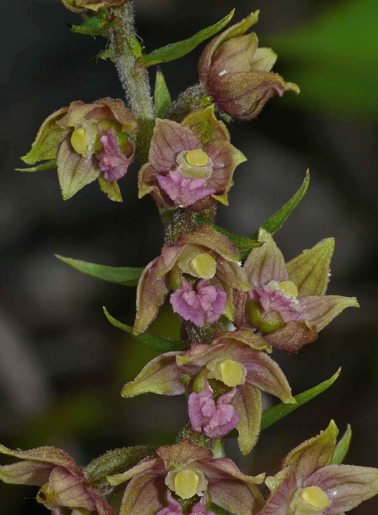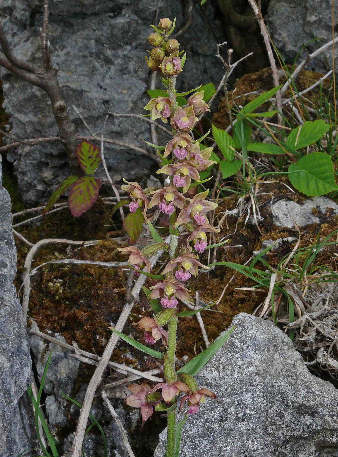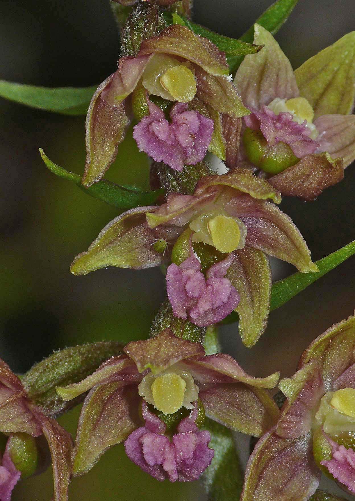 exchange. Whilst E. atrorubens occupies a more specialized habitat than its far less particular cousin, E. helleborine, the range of the two species overlap relatively frequently and most notably in lightly wooded calcareous uplands.