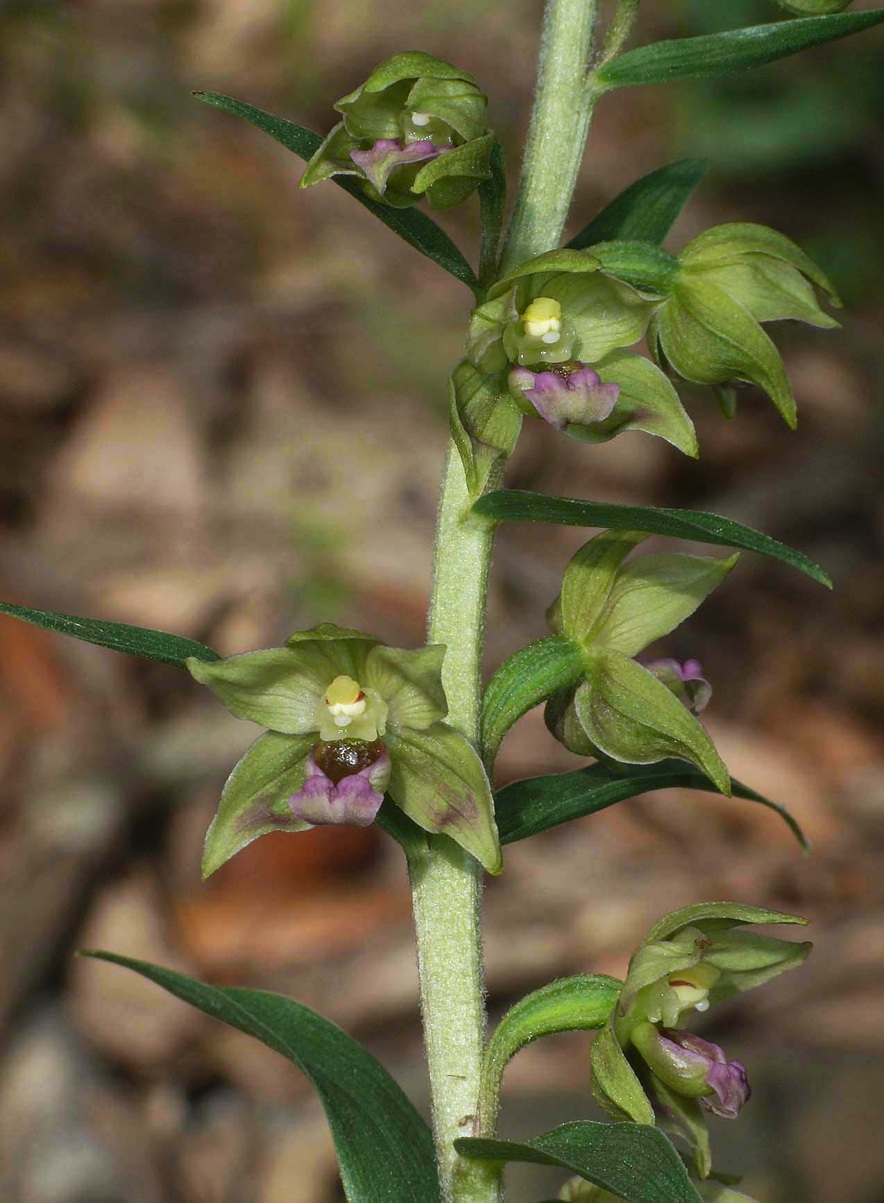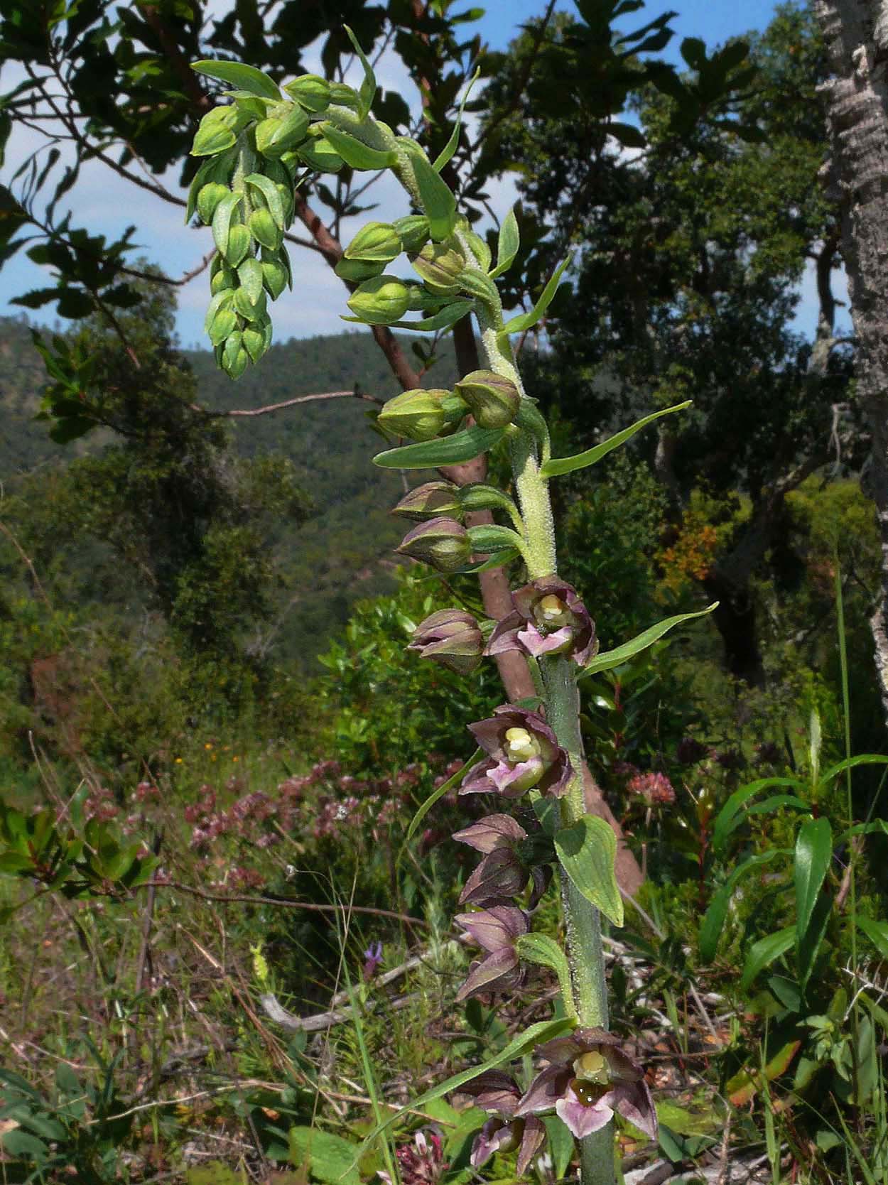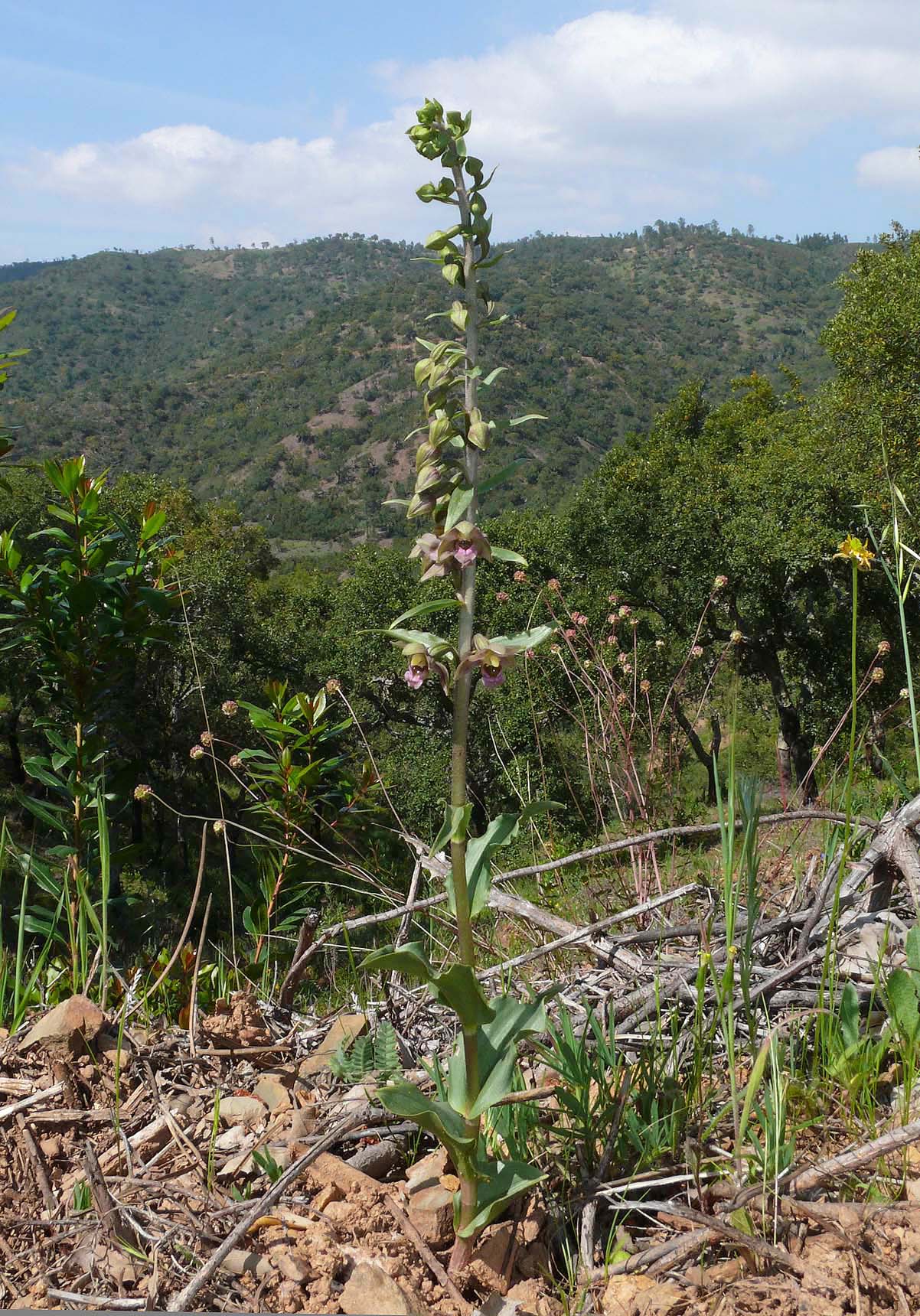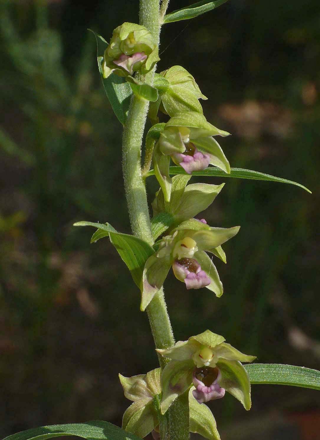 E. lusitanica was first described by D. Tyteca from the Algarve, Portugal in 1988 and its name literally means " from Portugal ". It is a member of the small, five species E. tremolsii group, all of which are characterized by strongly hirsute stems and short, broad leaves which tend to be clustered towards the base of the stem. The status of this orchid as a full species is not widely accepted, with many authorities preferring the view that it is simply a variety of E. tremolsii. It is an extremely variable orchid that can arise in a range of colouration, size and appearance which can consequently closely imitate other species. Due to the limited distribution of the species in southern Portugal and south west Spain this propensity for imitation can really only create identification difficulties with one other species, E. tremolsii. This does however occur and where the two species grow together on acidic substrates they can be very difficult to separate. E. lusitanica is normally a less robust plant, growing no higher than 50cms, with fewer leaves and paler colouration but the flowers themselves offer little by way of a means of species separation. It is thought that this orchid along with the other members of the group, developed from a common ancestor, perhaps E. helleborine or E. atrorubens as adaptations to an increasingly xeric environment. E. lusitanica is an orchid restricted to acid soils, where as with many other Epipactis species it prefers a shady position in woodland clearings and edges. The photographs come from the Algarve and date from the middle of April. |