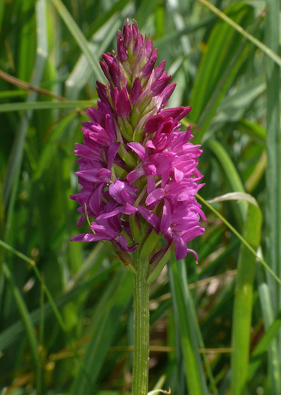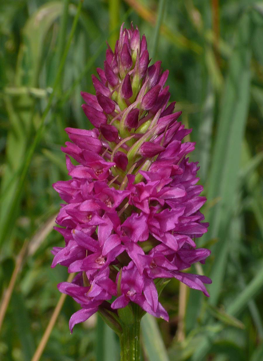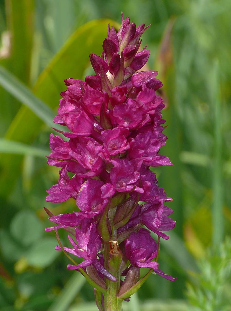 The range of Gymnadenia x suaveolens is obviously determined by that of its progenitors, as is its habitat choice, this being calcareous grassland between 1000 and 2500 metres. The hybrid is however found more frequently below the 2000 metre level where plant numbers are higher and pollinating insects more prevalent. As can be seen from the photographs the plant is variable, but almost always of bright magenta colouration and of a size midway between the two parents. In the field the combination of these two characteristics make Gymnadenia x suaveolens highly visible, even in an already colourful alpine meadow. The pictures are all from the Dolomites and date from the first two weeks of July. |