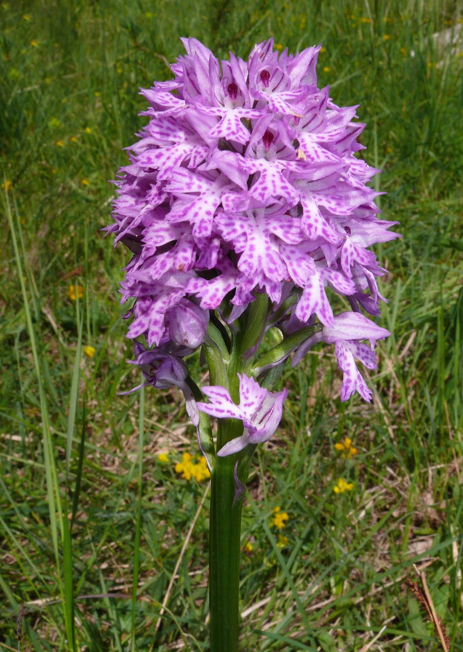 This is the title member of the N. tridentata group whose name means "three teeth" and refers to the canine-like perianth points surmounting the hood of each flower. It was originally described as Orchis tridentata from Slovenia in 1772 but in 1997 was reassigned to the genus Neotinia along with the other five members of the tridentata goup. N. tridentata is a common orchid with a widespread range similar to that of N. lactea though it is somewhat rarer in the west and increases in frequency as it travels eastwards. Its distribution is not however fully understood due to confusion with other group members, notably the morphologically similar but not closely related N. commutata. The related species with which it is most frequently mistaken is N. lactea but there are significant characteristics which help simplify identification. Firstly, N. lactea has an elongated inflorescence that usually (but by no means always) carries numerous tightly packed flowers. N. tridentata on the other hand has a short, often oval shaped or vaguely flat topped inflorescence that tops a relatively tall stem. The second distinguishing feature is the lip, which in N. lactea has a knee-joint type of profile below the stigmatic cavity and strongly recurved lip edges. With N. tridentata the whole lip is much flatter and photograph 1 depicts this very well. Finally and importantly N. tridentata lacks the olive green colouration to the inside of the hood. This final feature is not however the case with N. tridentata var. angelica from Crete which often exhibits this colouration. The illustrations are from Southern France and Croatia, dating from the beginning of May. |