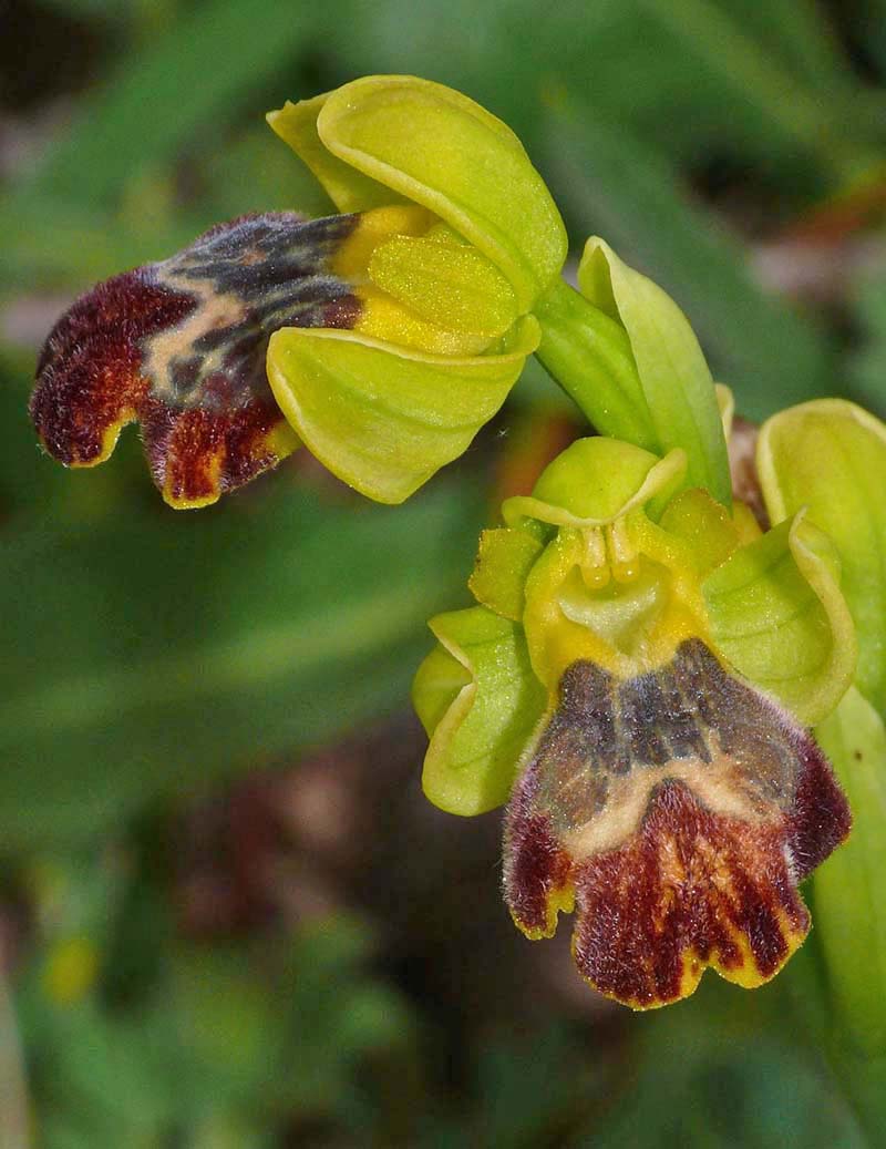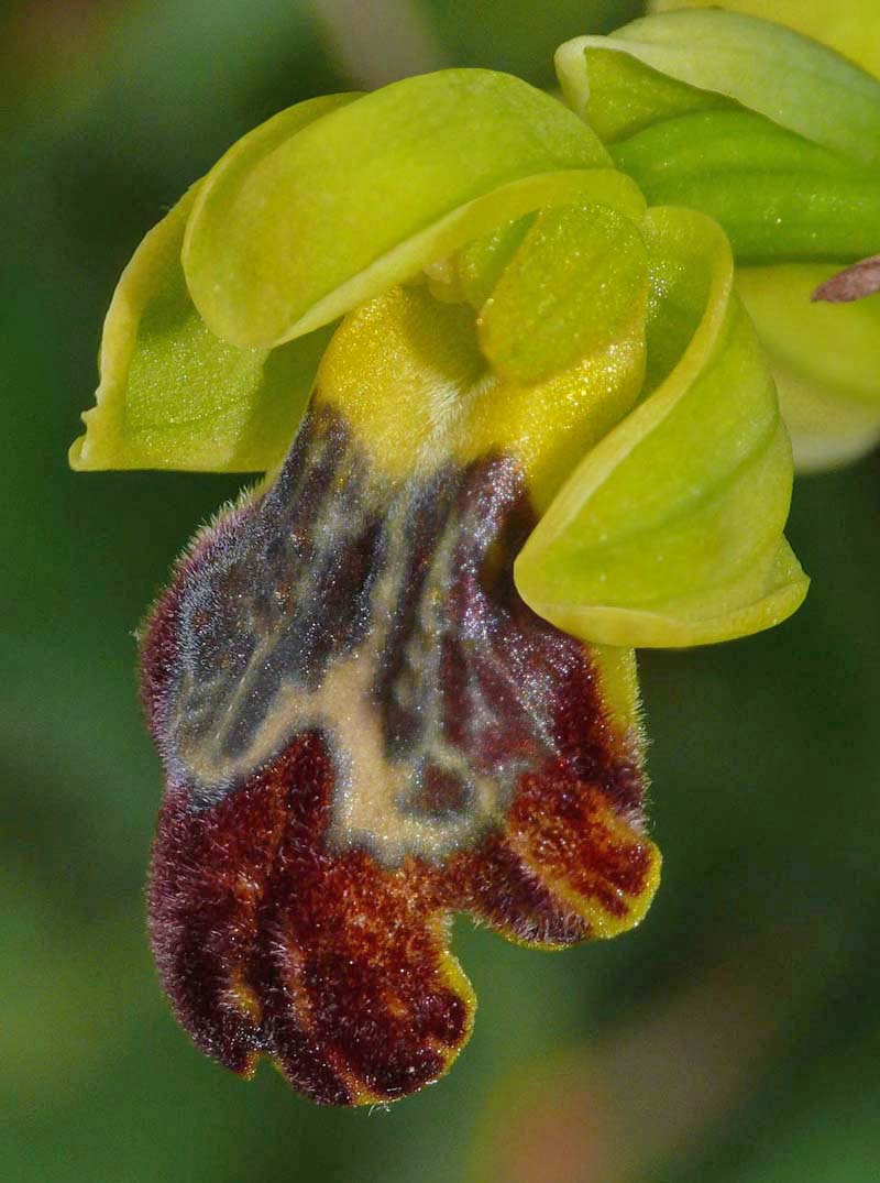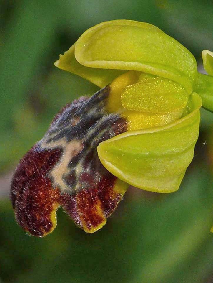 This Ophrys was first described by Delforge from Malta in 2000 and was named O. caesiella where "caes" refers to the bluish grey colouration of the