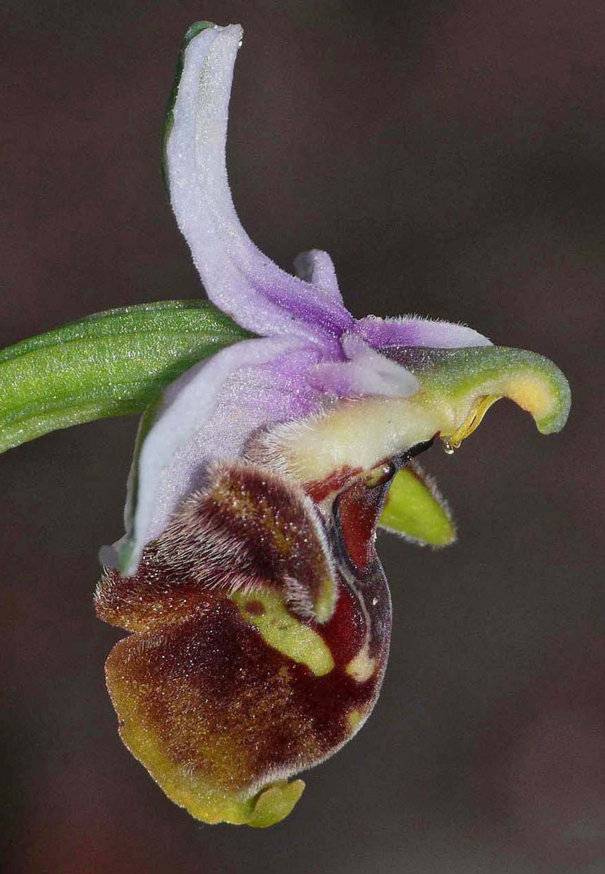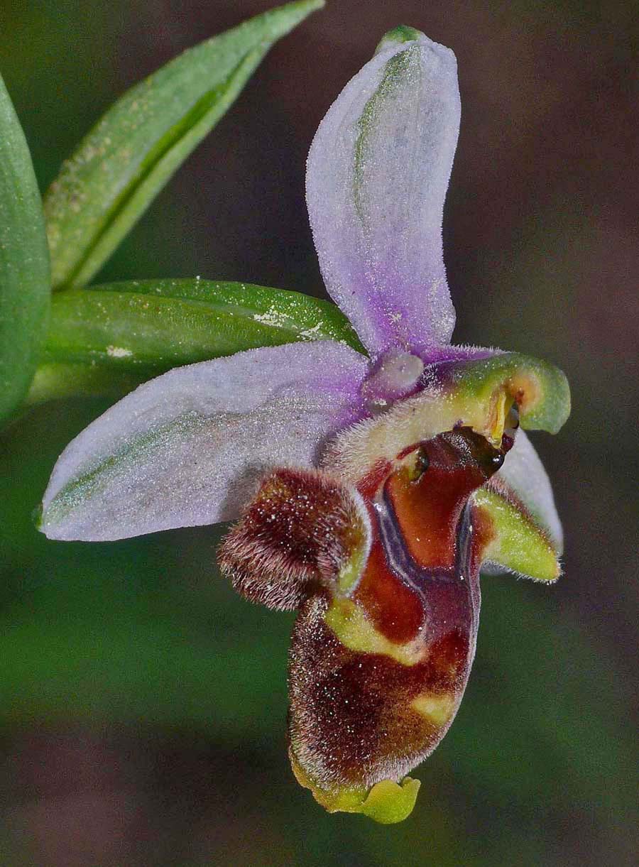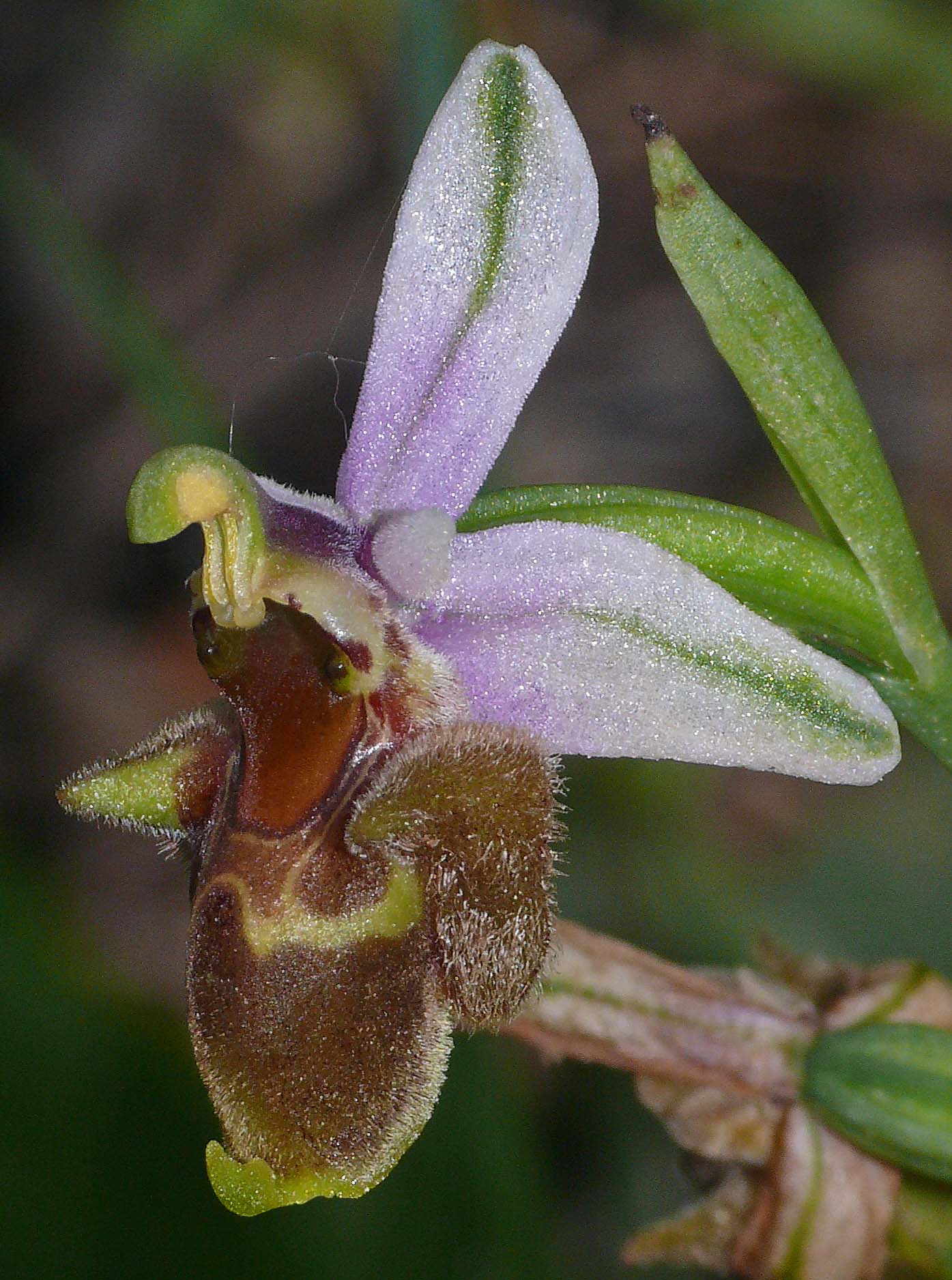 O. heterochila was originally thought to be endemic to Rhodes but has subsequently been discovered (albeit rarely) on other of the Aegean islands, notably Chios, Samos and Lesbos. It is also thought to be present in small numbers in a few locations along the neighbouring Aegean coast and hinterland of Anatolia. The full range of this taxon has however yet to be established. O. heterochila is a member of the 17 strong, eastern Mediterranean O. heldreichii group, which although local, can be abundant in its stronghold on Rhodes. It is close in size to the similar O. minutula, although confusion is unlikely on Rhodes as it is not thought to occur there. O. cornutula however is widespread on all the bigger Aegean islands and being a similarly small-flowered Ophrys can be the source of misidentification. A key differentiator between the two species is the more colourful, complex speculum pattern and long lateral lobes (horns) of O. cornutula. On Samos where O. minutula may be found, albeit uncommonly, O. heterochila may be distinguished by its larger leaf rosette and more sturdy appearance. The flower of O. minutula is also slimmer and significantly more colourful. The pictures are from Rhodes and Chios, dating from the first week of April. |