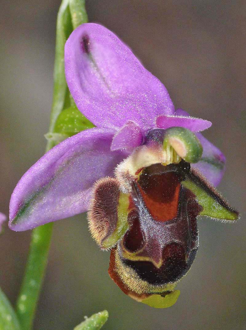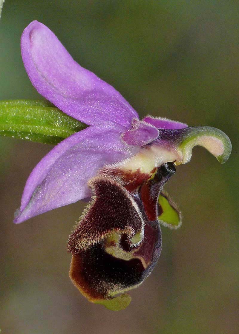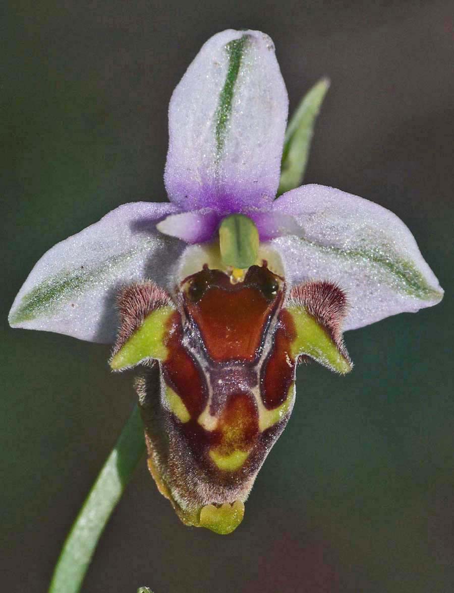 O. heterochila was originally thought to be endemic to Rhodes but has subsequently been discovered (albeit rarely) on other of the Aegean islands, notably Chios, Samos and Lesbos. It is also thought to be present in small numbers in a few locations along the neighbouring Aegean coast and hinterland of Anatolia. The full range of this taxon has however yet to be established. O. heterochila is a member of the 17 strong, eastern Mediterranean O. heldreichii group, which although local, can be abundant in its stronghold on Rhodes. It is close in size to the similar O. minutula, although confusion is unlikely on Rhodes as it is not thought to occur there. O. cornutula however is widespread on all the bigger Aegean islands and being a similarly small-flowered Ophrys can be the source of misidentification. A key differentiator between the two species is the more colourful, complex speculum pattern and long lateral lobes (horns) of O. cornutula. On Samos where O. minutula may be found, albeit uncommonly, O. heterochila may be distinguished by its larger leaf rosette and more sturdy appearance. The flower of O. minutula is also slimmer and significantly more colourful. The pictures are from Rhodes and Chios, dating from the first week of April. |