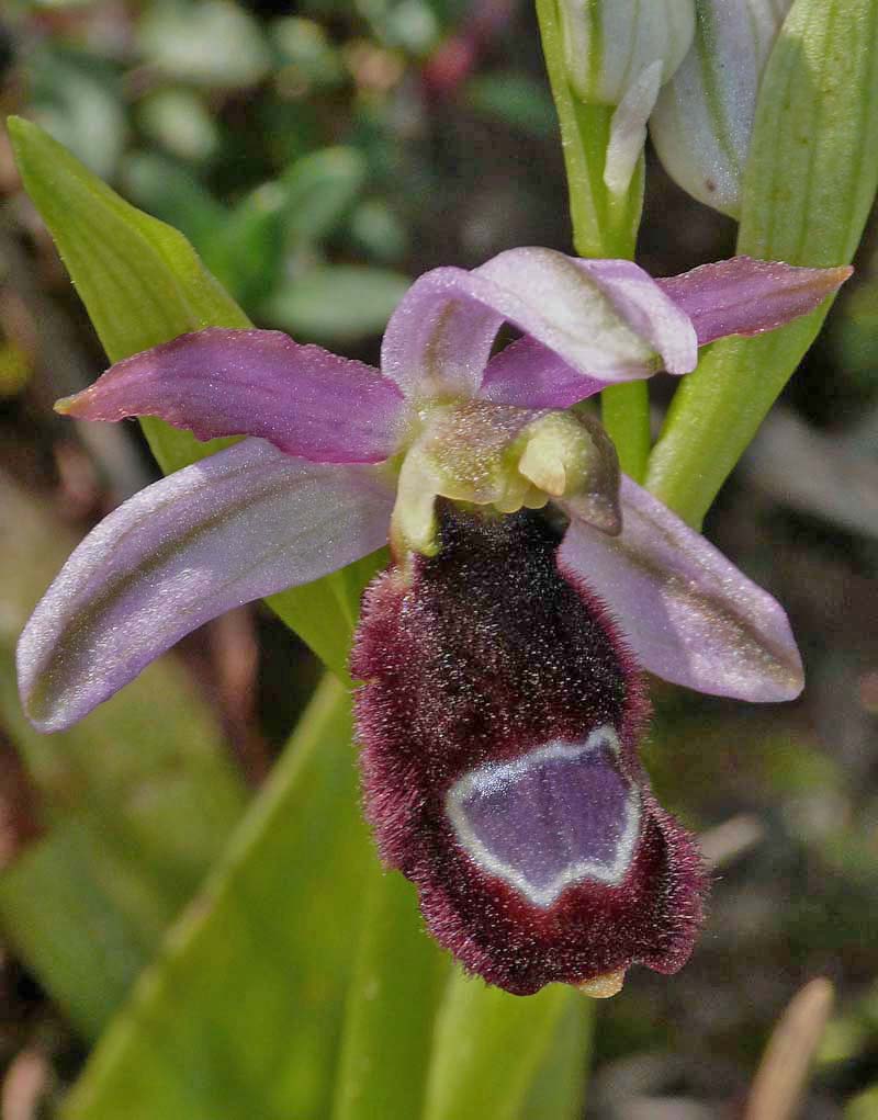 It's a very local orchid but can be frequent in its favoured areas, these areas always being dry locations in full sun on rocky hillsides, garrigue, abandoned olive groves and light woodland. Its preferred habitat is always at an elevated altitude, usually in the Alpine foothills between 250 and 1000 metres rather than in the high mountains. O. drumana is easily recognized as a member of the O. bertolonii group and at up to 35cms is certainly one of the sturdier. Its appearance, although somewhat variable, is similar to other of its cousins though there is only a very small overlap of range with one other group member, O. saratoi. This somewhat isolated distribution is therefore a key distinguishing factor when trying to identify it. An increasing number of experts are beginning to question the taxonomic status of the O. bertolonii group representatives in south west France and it's possible if not probable that some rationalization may take place in future years. As already mentioned, O. drumana can be a variable orchid with notable differences in both lip shape and speculum colouration. Plant size is however consistent, being tall with up to a dozen individual flowers, usually growing in small, loose colonies. The illustrations date from late May and are all from the southern Vercors, predominantly in the area between the small towns of Combovin and Beaufort-sur-Gervanne. |