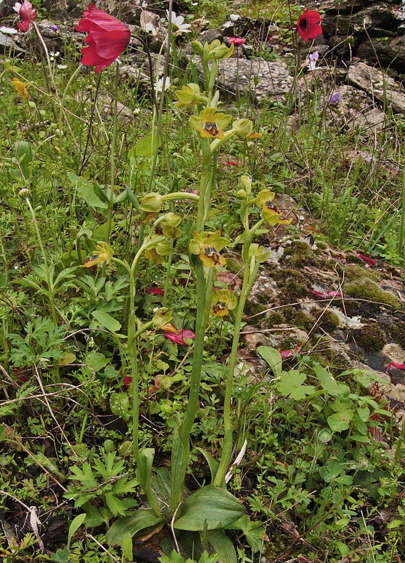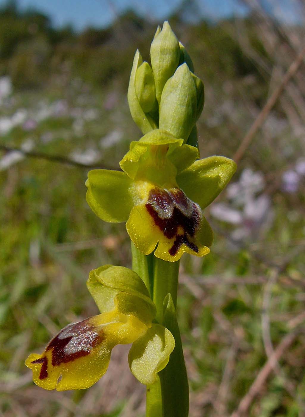In recent years however the name O. galilaea has again come to the fore via studies by, amongst others Pedersen and Faurholdt (2007) and Hennecke and Munzinger (2014) which in brief conclude that the O. sicula found in the eastern Mediterranean is not the same species as that occurring in more westerly regions such as Sicily and mainland Italy. It further suggests that the eastern Mediterranean species from Greece, the Aegean basin, Crete and Cyprus is O. galilaea, as described in 1923 by Fleichmann and Bornmueller from the middle east. The studies quote various minimal but measurable differences between the two species including pilosity, these characteristics are however difficult to display photographically. The orchid world and the authorities who inhabit it, have never needed much encouragement to disagree with a fellow expert's observations and the splitting of O. sicula has proved to be no exception. A search of the internet will quickly return a number of essays by orchid specialists who do not accept the findings and fully intend to continue to refer to the species as O. sicula, no matter which end of the Mediterranean it comes from. The authors do not have a view on the issue and leave it to those with more scientific minds to ponder over, in the meantime we offer the attached pictures as representative of plants from the eastern Mediterranean that were formally labelled O. sicula and which may now be reclassified as O. galilaeae. |