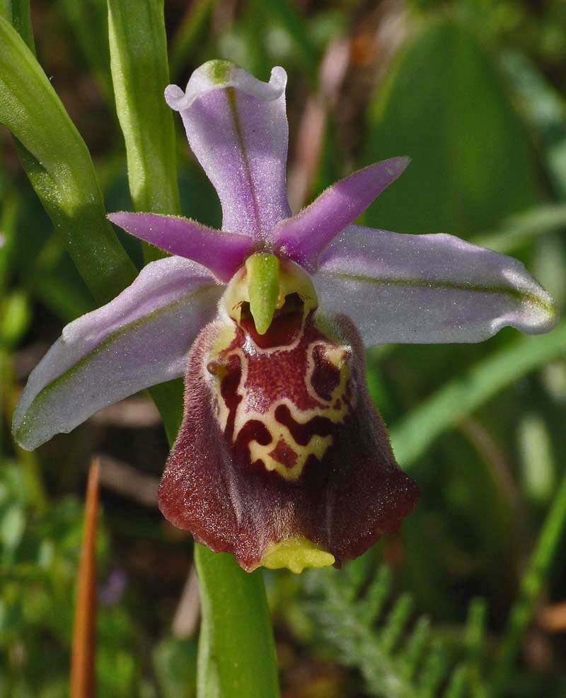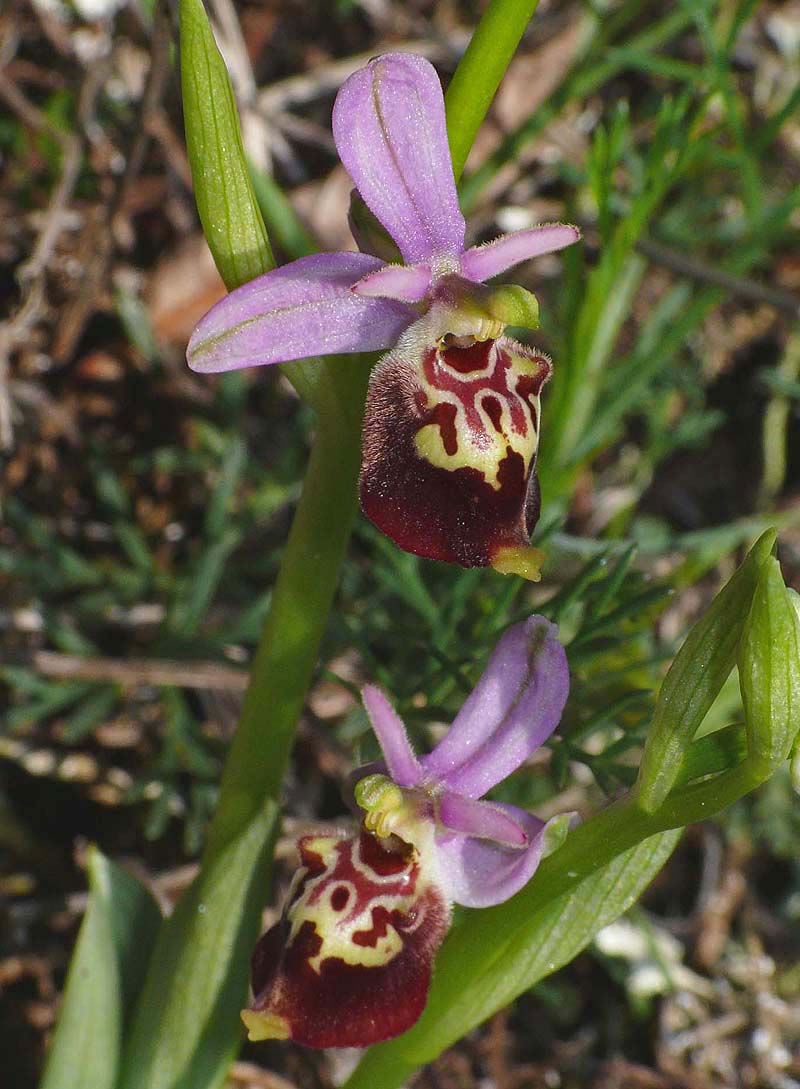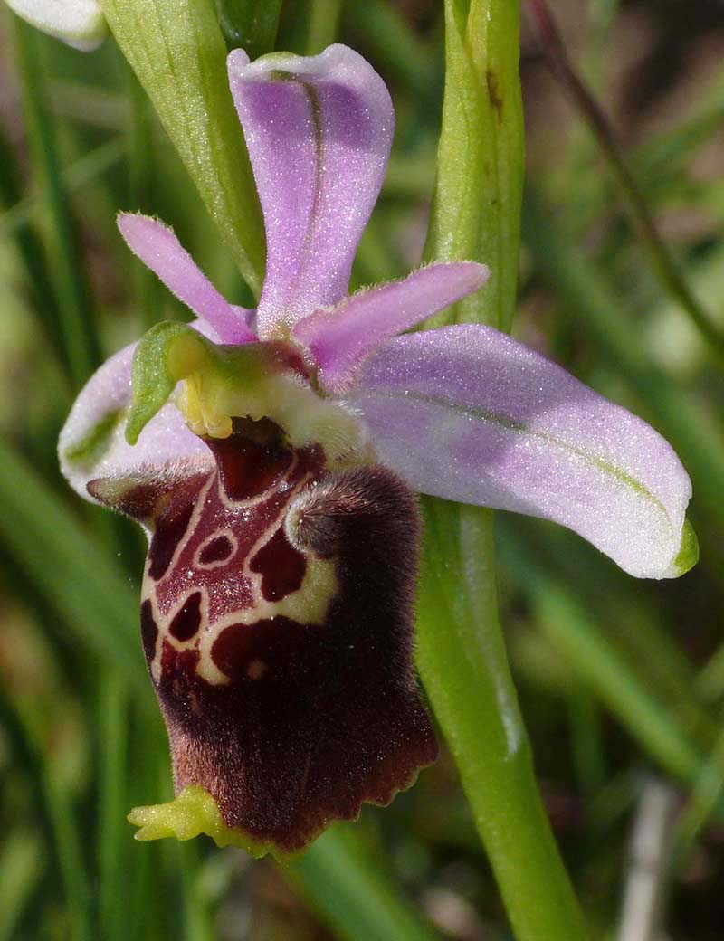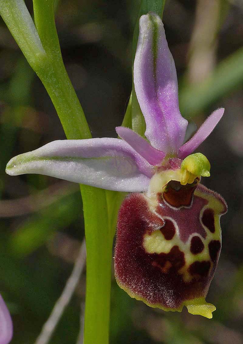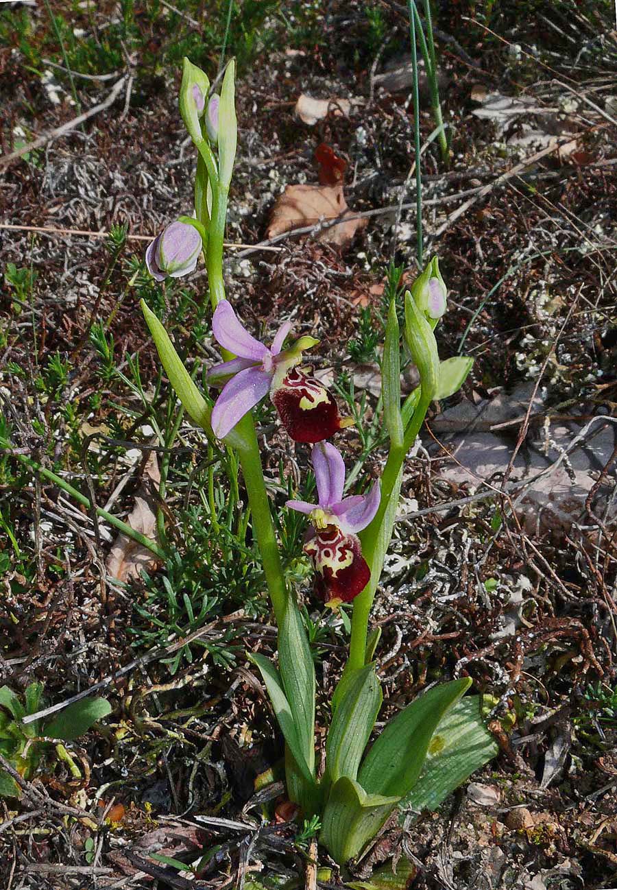 This species was first described from Alpes-Maritimes, France in 1869 and its name refers to the long, pointed petals. O. linearis is a member of the 13 strong O. tetraloniae group which take their name from the Tetralonia genus of bees, these being the most significant pollinators of this family of Ophrys. Several of this groups species are to be found in the Mediterranean and sub Mediterranean regions of southern France and northern Italy, where both natural variation and hybridization cause considerable problems with identification. It seems highly probable that this group has a polyphyletic origin encompassing genetic input from several other groups and this would certainly account for the high degree of morphological variability. O. linearis is not a common species but can be found locally in south east France as far north as Drome and across the Italian border in Tuscany and Umbria. The key characteristics in identification are the petals which as its name suggests are long, thin and pointed. (these can be up to 8mm in length) As may be seen from the illustrations, the lip shape varies, ranging from globular to scolopaxoid and reminiscent of the Greek species O. calypsus v scolopaxoides., a common synonym of this species being O. pseudoscolopax. The specular pattern is also variable, usually complex, often marbled, sometimes candicoid and with a dark red basal field that is sometimes partly divided by a thin, upward pointing extension of the speculum. Many of these features remind one of O. dinarica which is now also known to be present in central Italy. Separating the two species can be difficult, particularly as O. dinarica can exhibit petals of similar length and shape. The photos come from Drome (France), Tuscany and Umbria, dating from the first two weeks of May. |