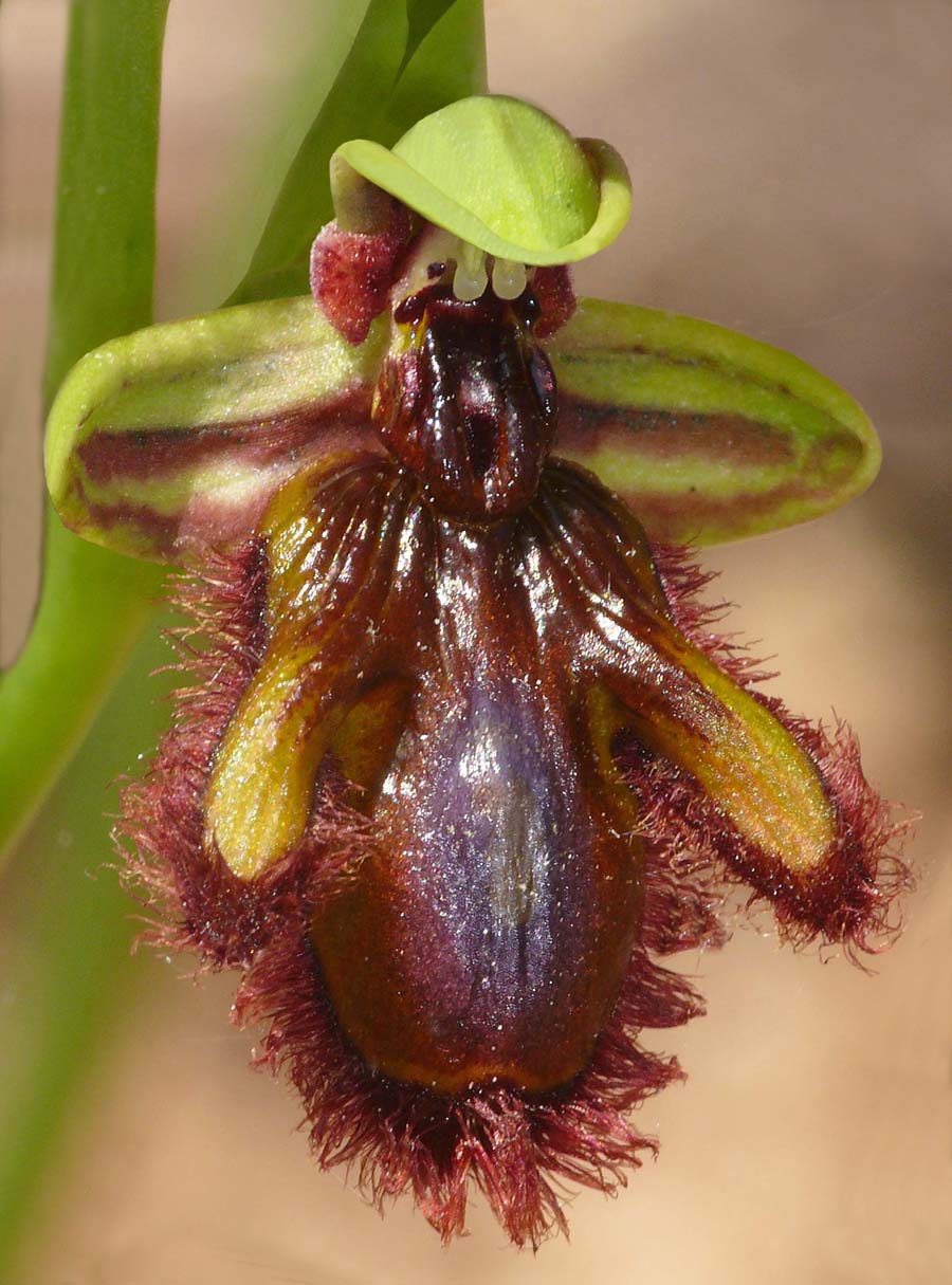 was ultimately described from Portugal by Paulas and Gack in 1990, having first been recognized by Brothero as O. vernixia as long ago as 1804. It is a member of the small O. speculum group
