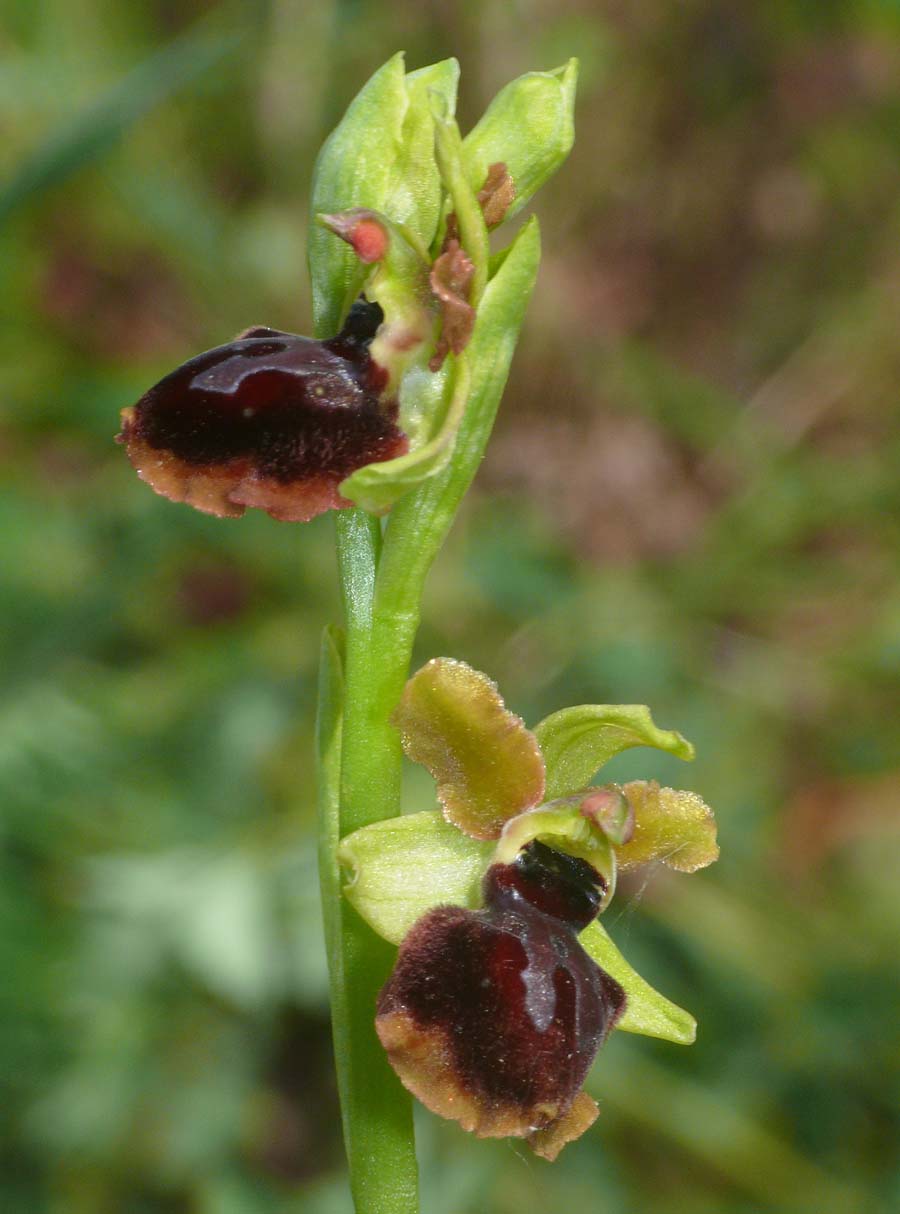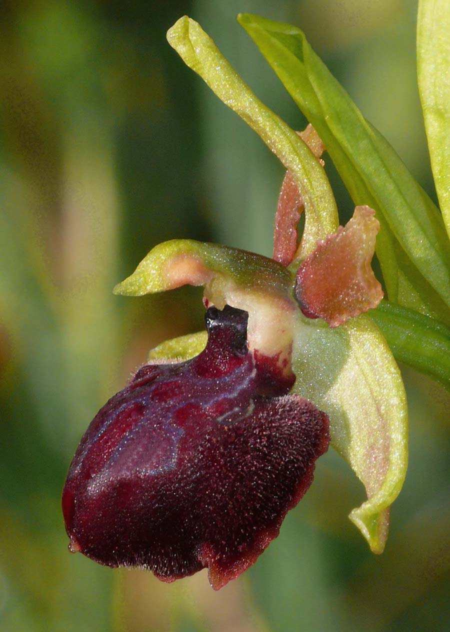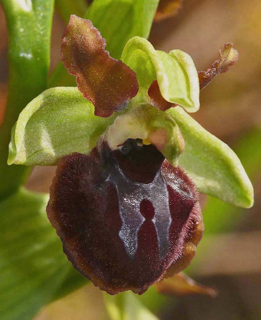 The Ophrys of peninsula Italy have attracted much research over the last two decades and this has resulted in a significant number of new species being described, the ranges of which are in several cases still not full understood. This large group of Ophrys exhibit a high degree of natural variation and have always presented botanists with a challenge with species separation. Distinguishing them is further complicated by the presence of large populations of intermediate plants arising from introgressive hybridization. The photos here depict Ophrys from a substantial mixed colony of O. maritima and O. garganica near the coast between Livorno and Grosetto. The two species share identical flowering times and were therefore simultaneously receptive to cross pollination, potentially by the same pollinating species. It should be mentioned however, that other species were close by and could also have contributed to the gene sharing. The pictures date from the first week of April. |