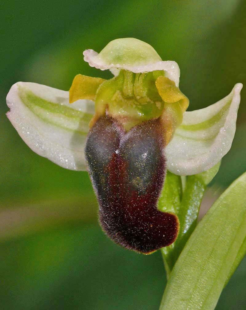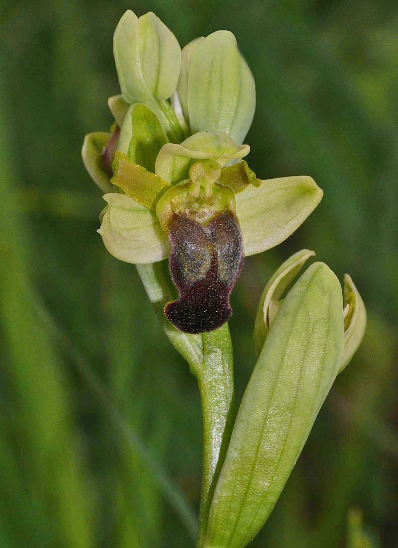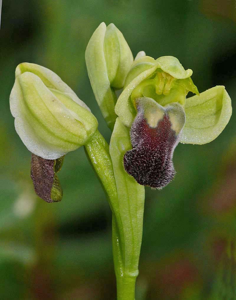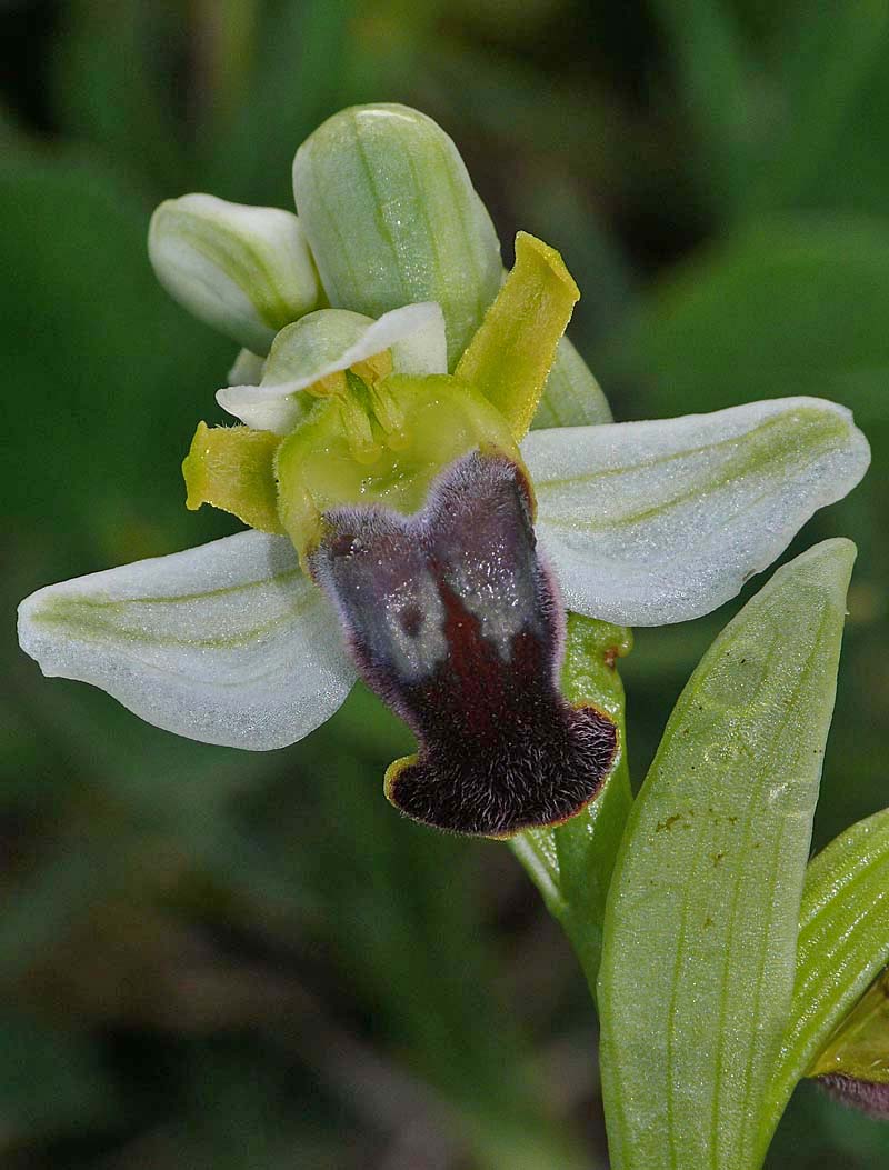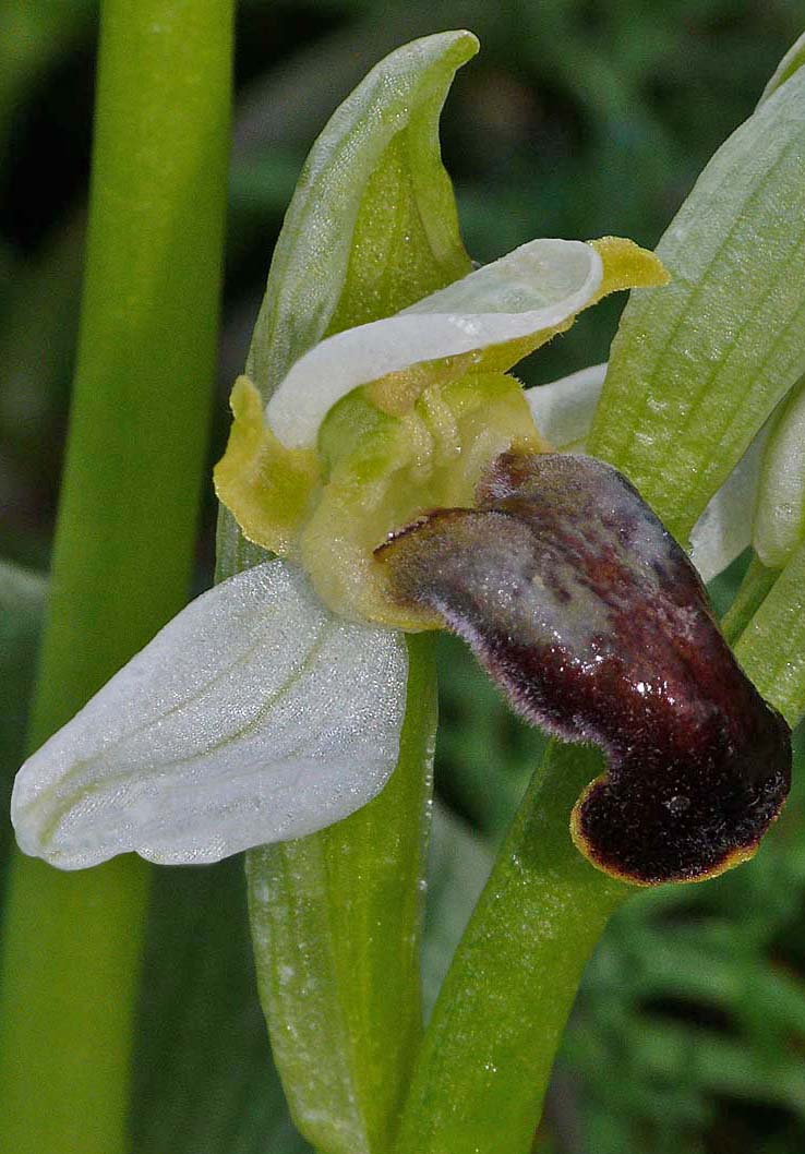 O. pallida was first described in 1810 by Rafinesque from the Palermo region of Sicily and was originally thought to be one of the many orchids endemic to that island. It has now been recognized however that O. pallida is in fact the same species as was known from Algeria as O. pectus and following the paper produced by Messrs Lowe, Gugel and Kreutz in 2007, the name O. pectus is now regarded as a junior synonym of O. pallida. The population of O. pectus from Tunisia has now been reclassified and renamed O. carpatina. Notwithstanding this extension to its known range, this species is rightly regarded as a very rare Ophrys being at its most frequent in a small area of western Sicily, centred on the beautiful Ficuzza Forest. It can be relatively easy to find, generally growing in small colonies, sometimes over a wide area and often in association with another of the area's specialties, Dactylorhiza markusii. Although as can be seen from the illustrations it is variable, it's impossible to mistake O. pallida for any other Pseudophrys. The strongly convex centre, large longitudinal protuberences and recurved tip combine to give the lip the appearance of a swollen and strongly bent knee joint. Its thought that the origins of O. pallida are quite distinct from its fellow group members and may be very ancient, possibly justifying a separate group status in its own right. Reports of hybridization are rare and populations seem largely genetically pure. The species has a relatively long flowering period and can be found from early March through to mid May. All the illustrations are from the Ficuzza Forest to the south east of Palermo and were taken during the third week of April. |