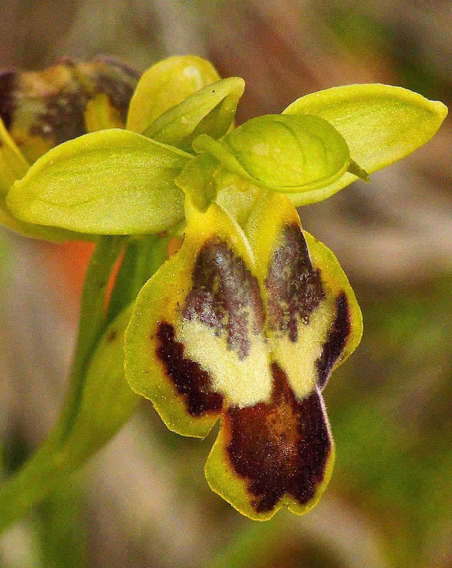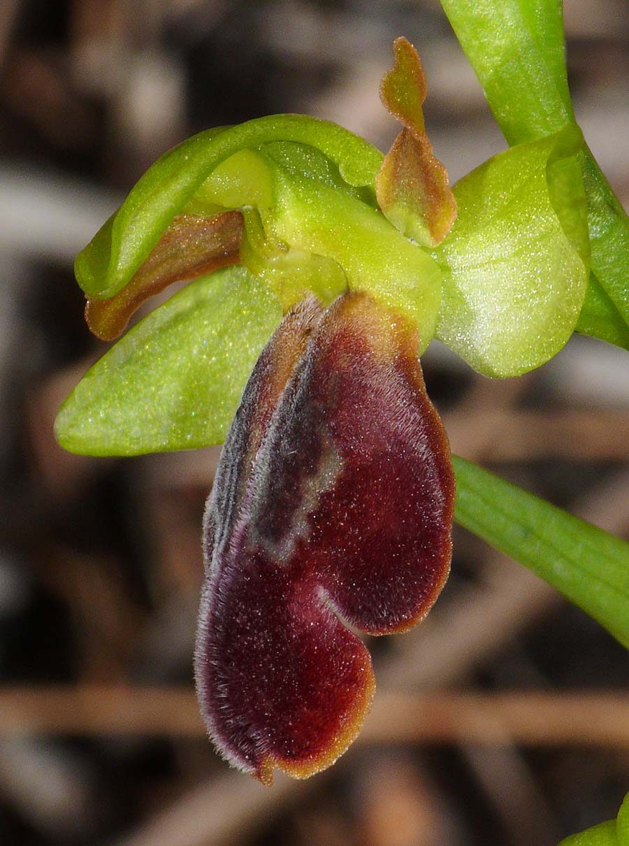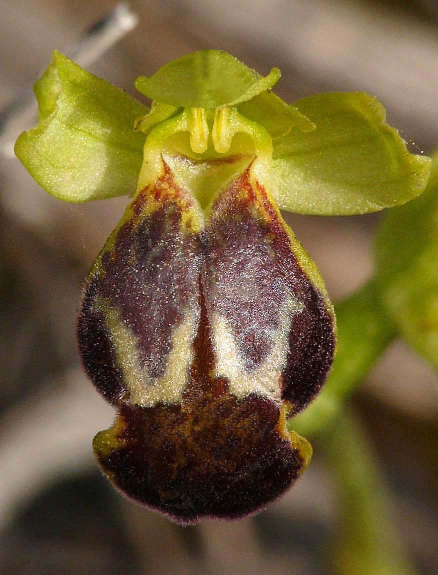 O. parosica was first described by Delforge from Paros in 1995 and is a member of the O. attaviria group of Ophrys. This species together with O. phaseliana and the more recently described O. pelinaea have been presenting taxonomic challenges for over a decade now, most particularly in terms of conspecificy but also the question of their very presence in the eastern Aegean. In 2006, Delforge acknowledged the possibility of conspecificy but nonetheless described O. parosica and O. phaseliana as separate species, both to be found in the islands of the eastern Aegean. His opinion subsequently moved to a reduction of O. phaseliana's status to one of variety (O. parosica v phaseliana). Further research by Paulus and Hirth (2015) does not accord with this view and recommended reclassification of both these species (together with O. meropes and O. theophrasti) from the eastern Aegean as O. pelinaea. Confirming O. parosica to be restricted to the Cyclades and O. phaseliana to south west Turkey, the latter therefore outside of the scope of this site. The situation has now settled into an understanding that O. phaseliana is restricted to Turkey, O. pelinaea is an individual and widespread species and O parosica is also a full species with a range through much of the Aegean. The illustrations are from Chios and Samos and depict plants with the typical marbling, yellow lip margin and open sinuses that are so characteristic of O. parosica. They date from the first week of April. |