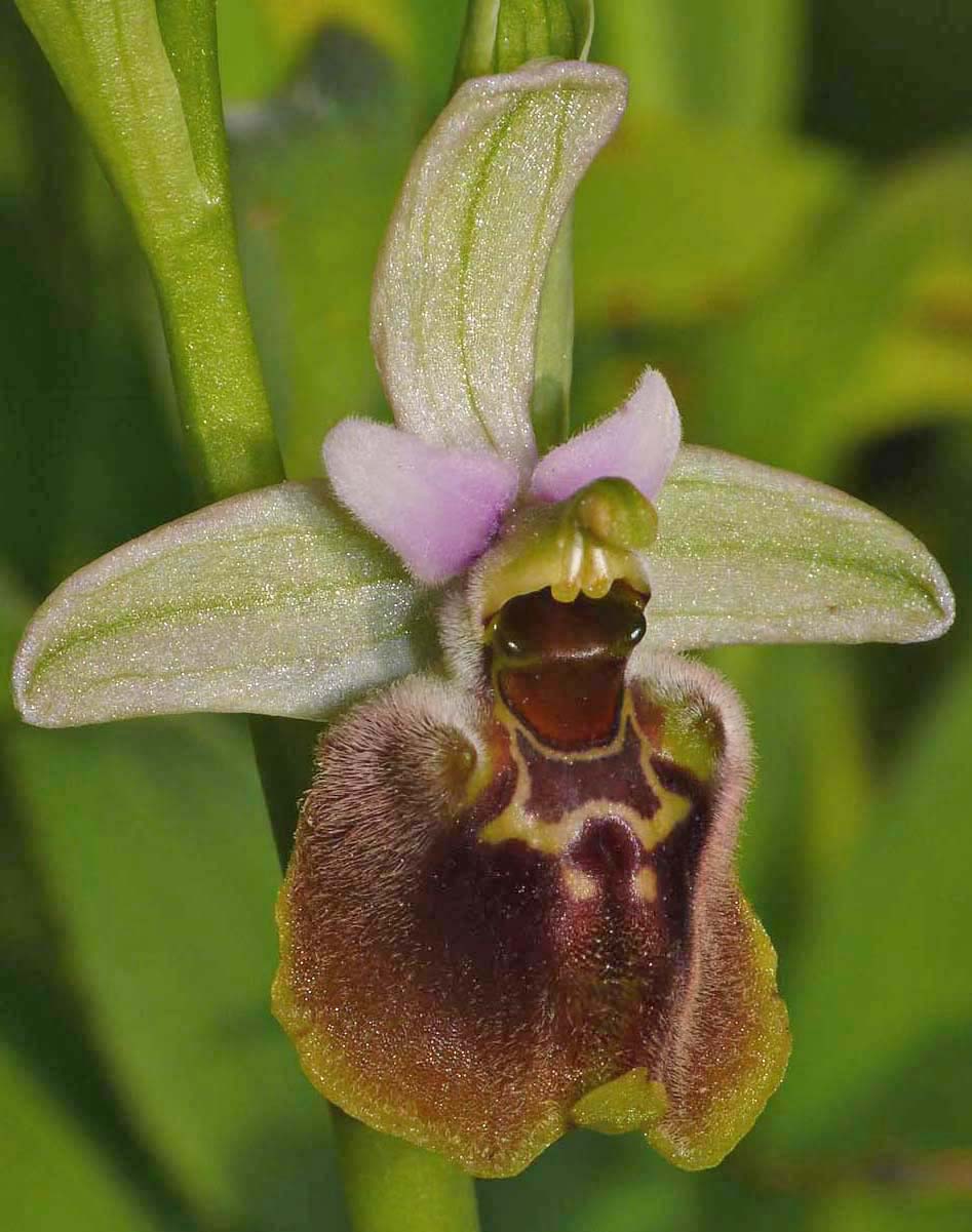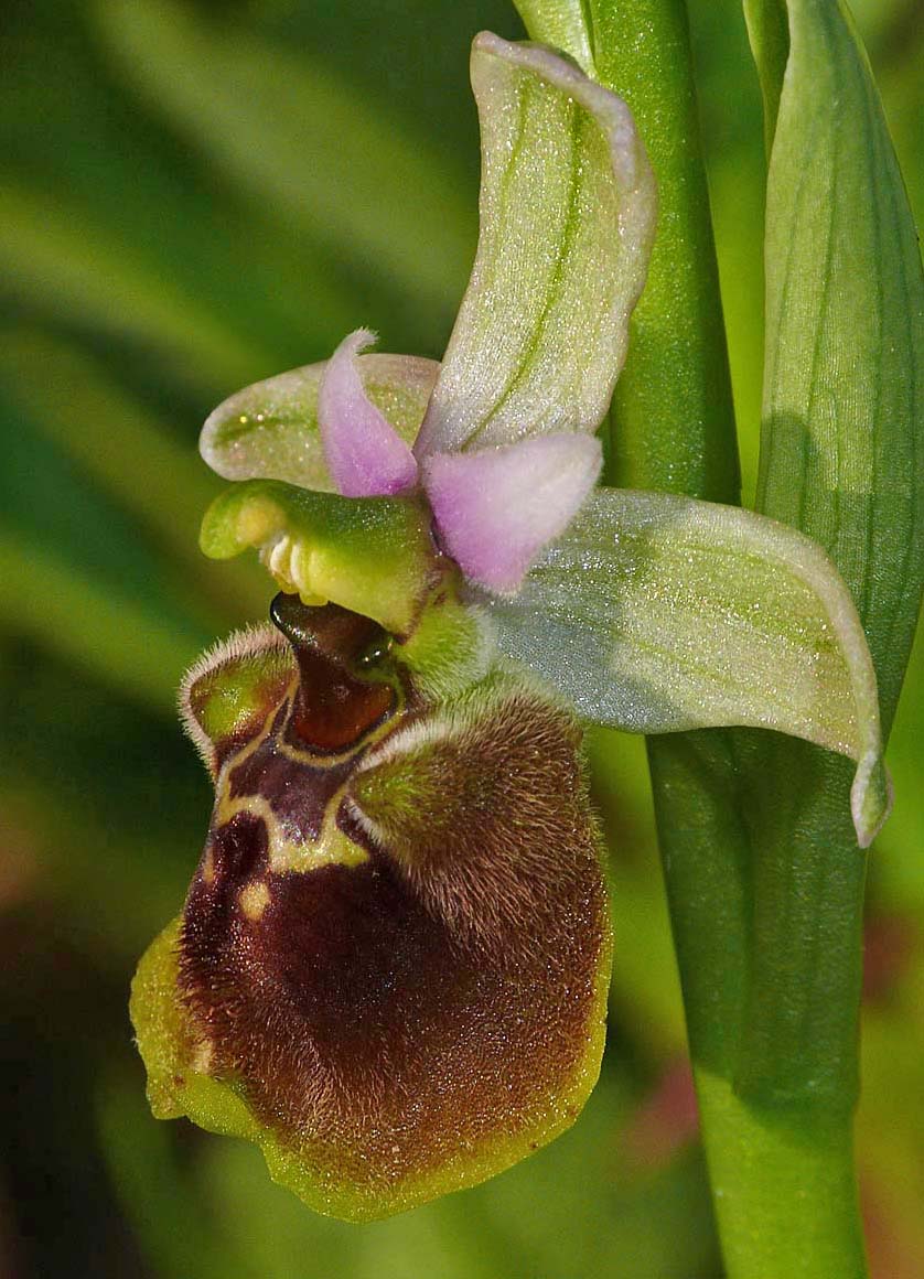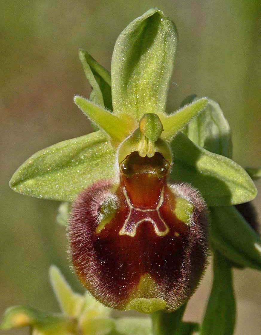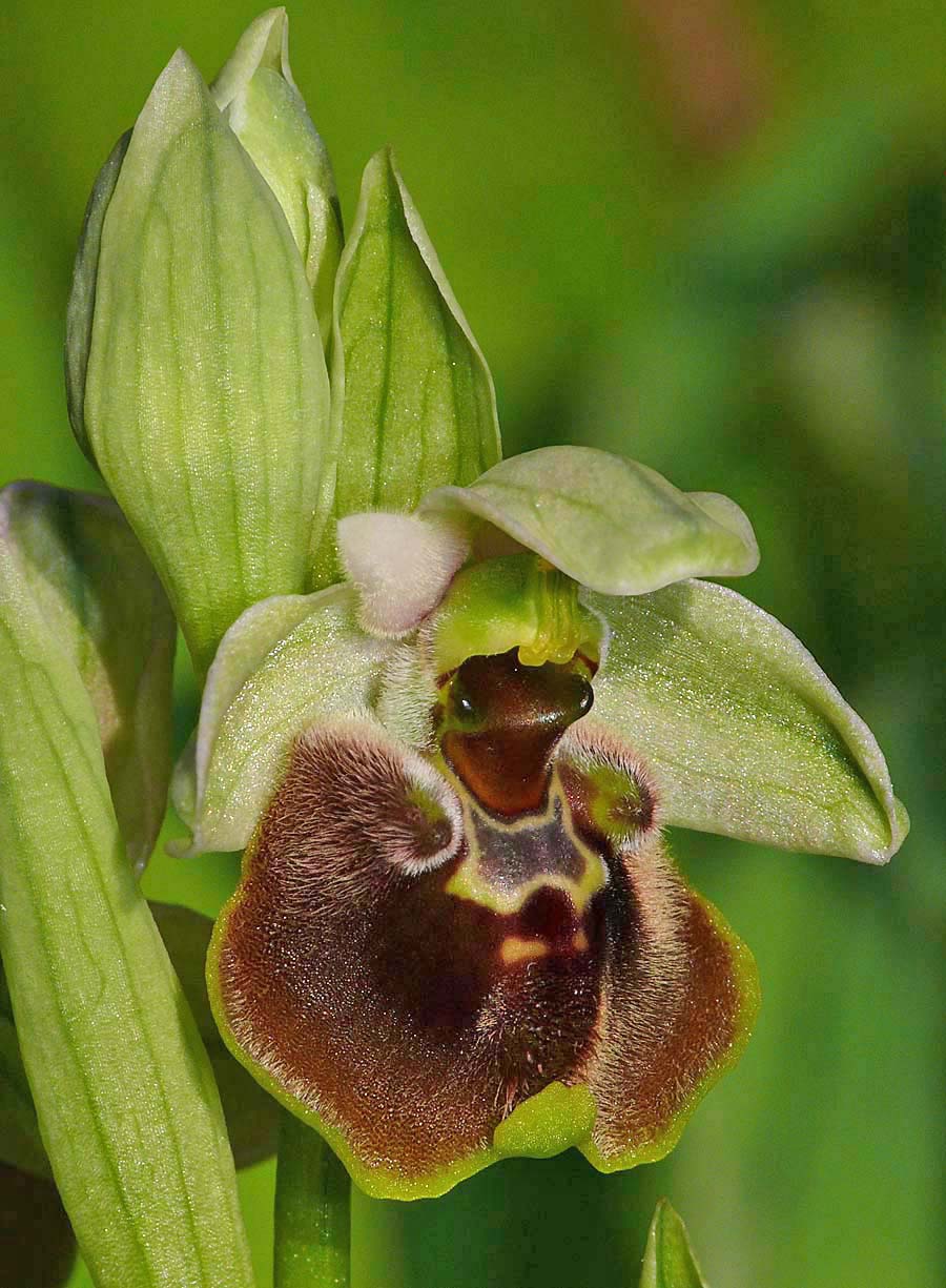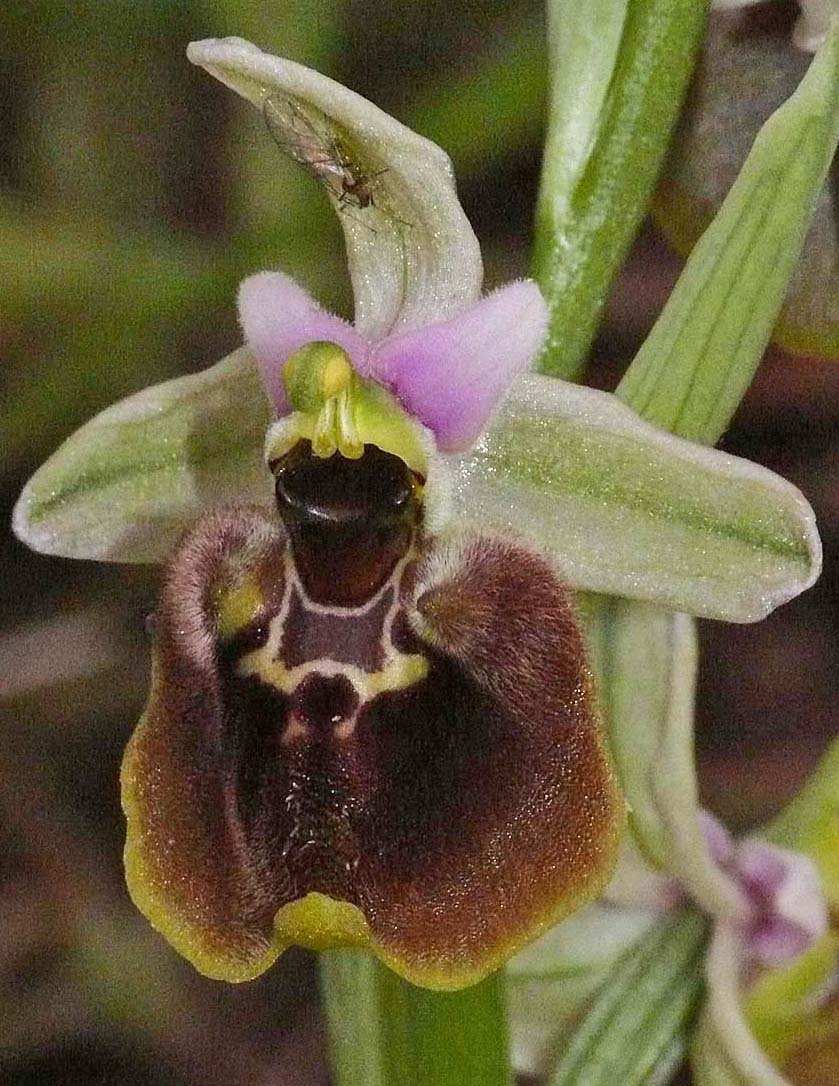O. parvimaculata is one of the easier fuciflorids to identify, not least because their are few other similar species growing within it limited range. The sepals are virtually always green, though occasionally they may be either lightly washed with pink or be so extremely pale as to appear white. Both O. celiensis and O. fuciflora can sometimes exhibit green or green tinted sepals but in these instances, the small size of the speculum will always differentiate O. parvimaculata from its cousins in the O. fuciflora group. The pictures come from Gargano and date from the middle of April. These plants could be expected to flower through into May. |