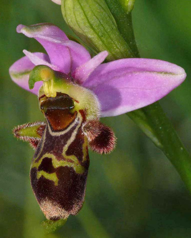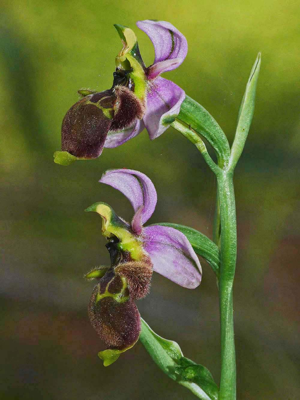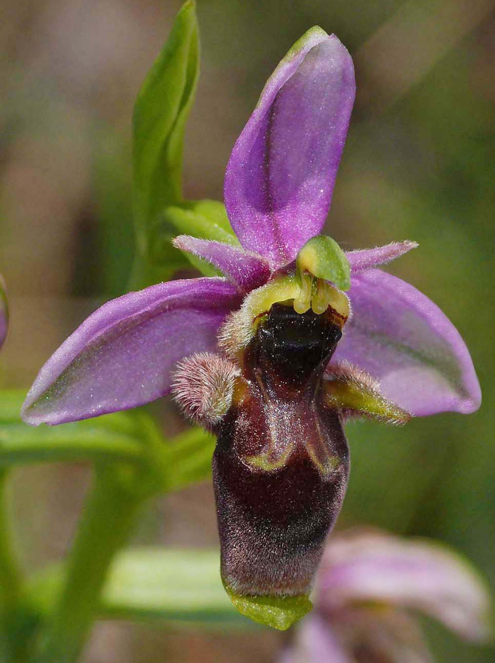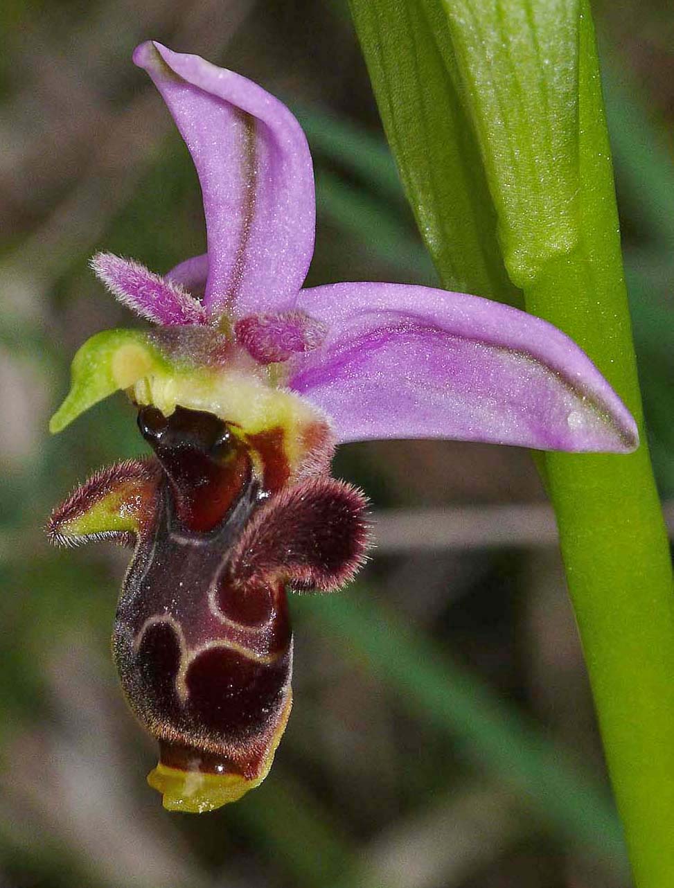 This species is essentially an orchid of the Iberian peninsula but which can stray across the French border into the Pyrenees, as far north as the Corbieres. O. picta may also be found in Sardinia, Tunisia and possibly Morocco, albeit very rarely. Its range is not however known with any certainty due to its similarity to other locally occurring species such as O. sphegifera. Although the labellum is very similar it differs from this species by virtue of the sepals which in that species are always greenish whereas in O. picta can vary from white to pale pink. They are never a dark pink and this characteristic helps differentiate it from the more robust flower of O. scolopax. The petals are usually long, thin, vaguely triangular and of a darker shade than the sepals. In the paler examples the base of the petals are often washed with a violet hue and this characteristic can be clearly noted in picture ten. The stigmatic cavity is large, usually dark brown to dark rusty red and the base is broad and less constricted than that of either O. scolopax or O. sphegifera. O. picta is an early flowerer (February to May) and is normally past its best when both the above Ophrys are in their prime. Its a species of alkaline soils and although it will tolerate moderate shade, clearly prefers a position in full sun. The accompanying pictures are all from the Corbieres region of Southern France and the Province of Malaga in Southern Spain. They date from the middle of April by which time many of the plants were well past their best.. |