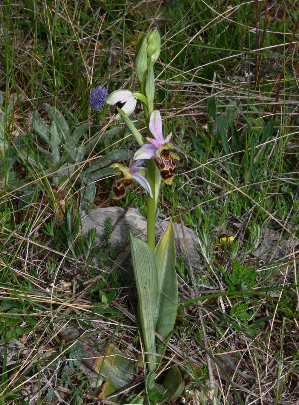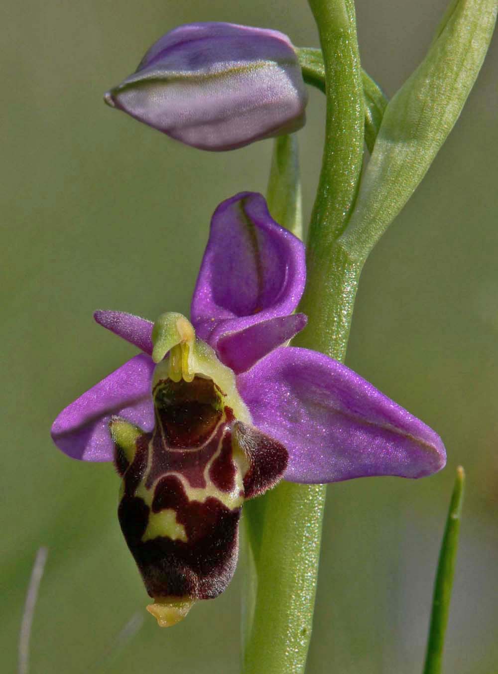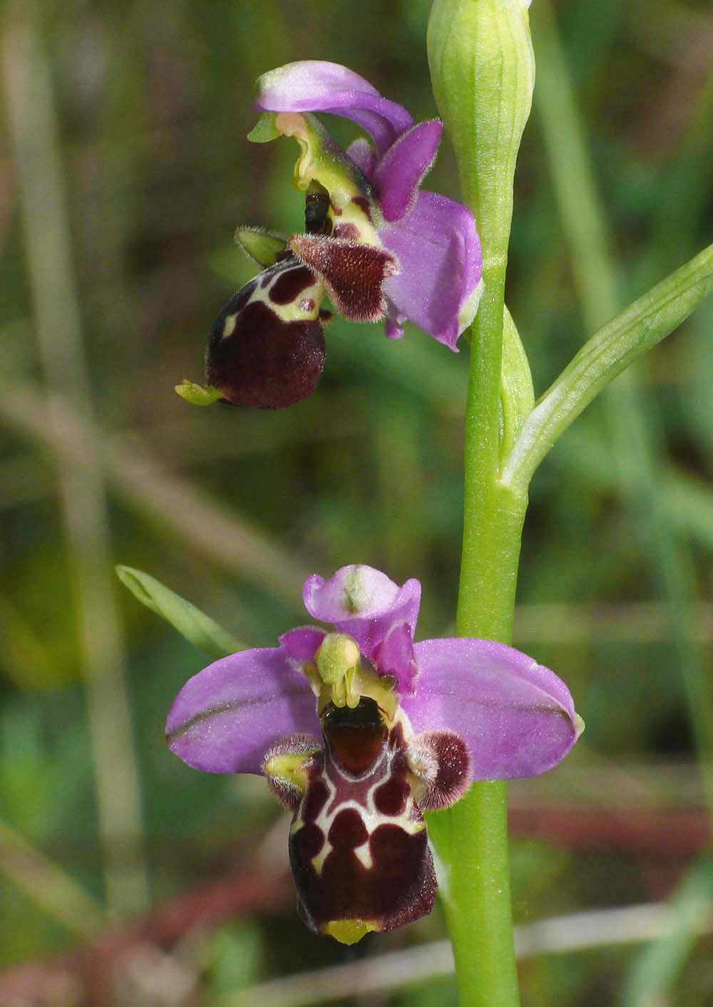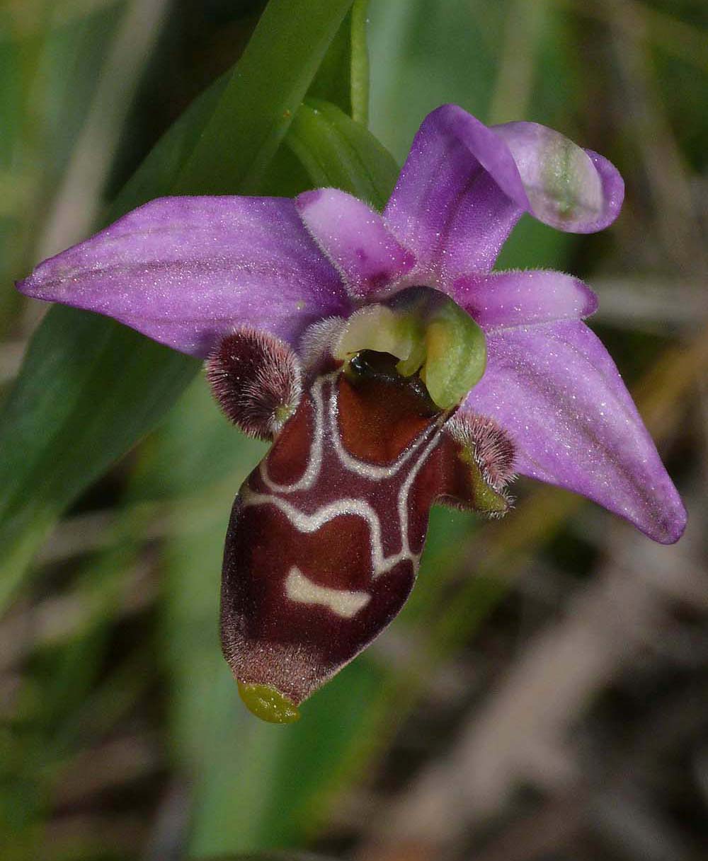 O. scolopax was first described by Cavanilles from Albaida, Spain as long ago as 1793 and takes its name from its perceived resemblance to the plumage of the woodcock, a small, long billed game bird ? Unsurprisingly its vernacular name is the Woodcock Ophrys. This is a widespread, western Mediterranean member of the small O. scolopax group with a range that takes it from Spain, through the Pyrenees into Southern France and as far east as Liguria in Italy. It can be found growing in very different types of habitat, tolerating either alkaline or acidic substrates, both in full sun or mid shade. Although O. scolopax frequently grows in the company of similar species, it's not particularly difficult to distinguish though some populations have suffered genetic interference from both O. corbariensis and O. picta and can exhibit intermediate characteristics. O. scolopax normally comes into flower in early April which depending on location, is up to a month later than O. picta and usually a month prior to O. corbariensis. In terms of proportions, both the flower and the overall plant of O. scolopax is mid sized between these other two species, being a significantly smaller flower than O. corbariensis but larger than O. picta. It is also by far the commonest of the three species and in its favoured locations may be abundant. The petals and sepals are normally concolourous and vary in shade from white to mauve, although they can very occasionally be a pink washed green. The pictures here come from various regions of southern France and northern Spain, dating from the first two weeks of April. |