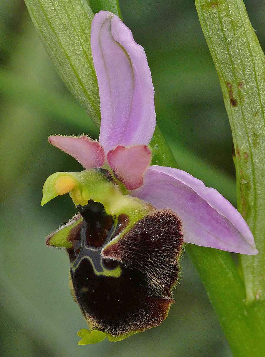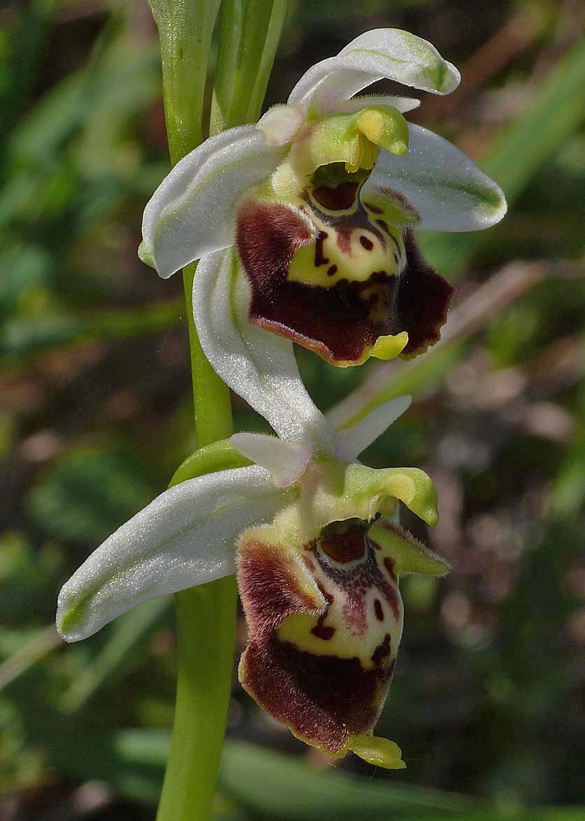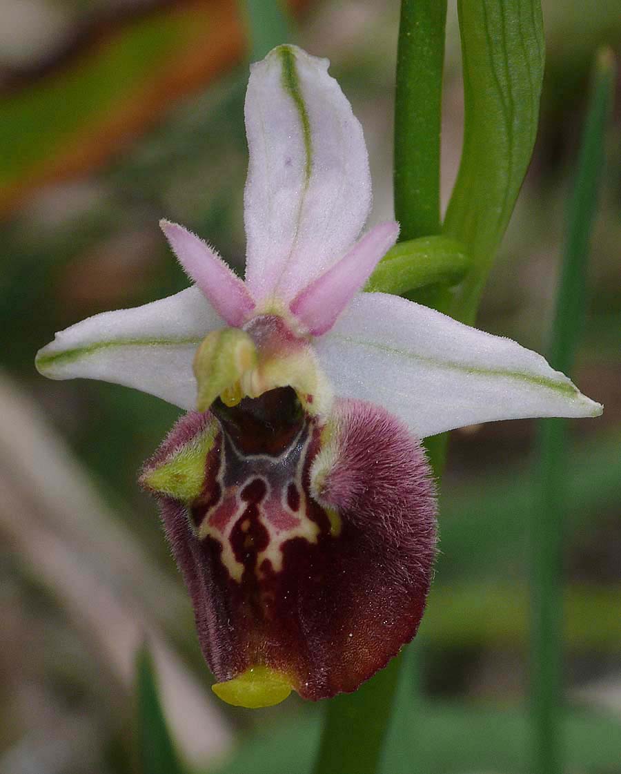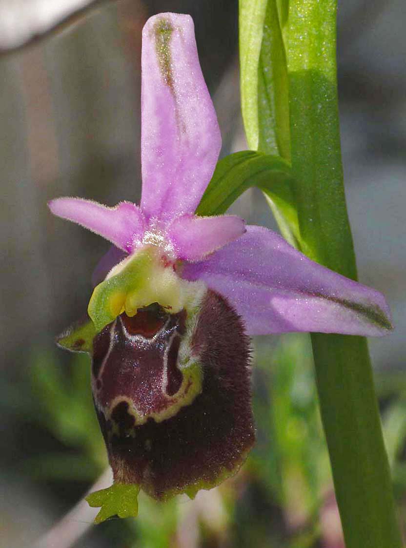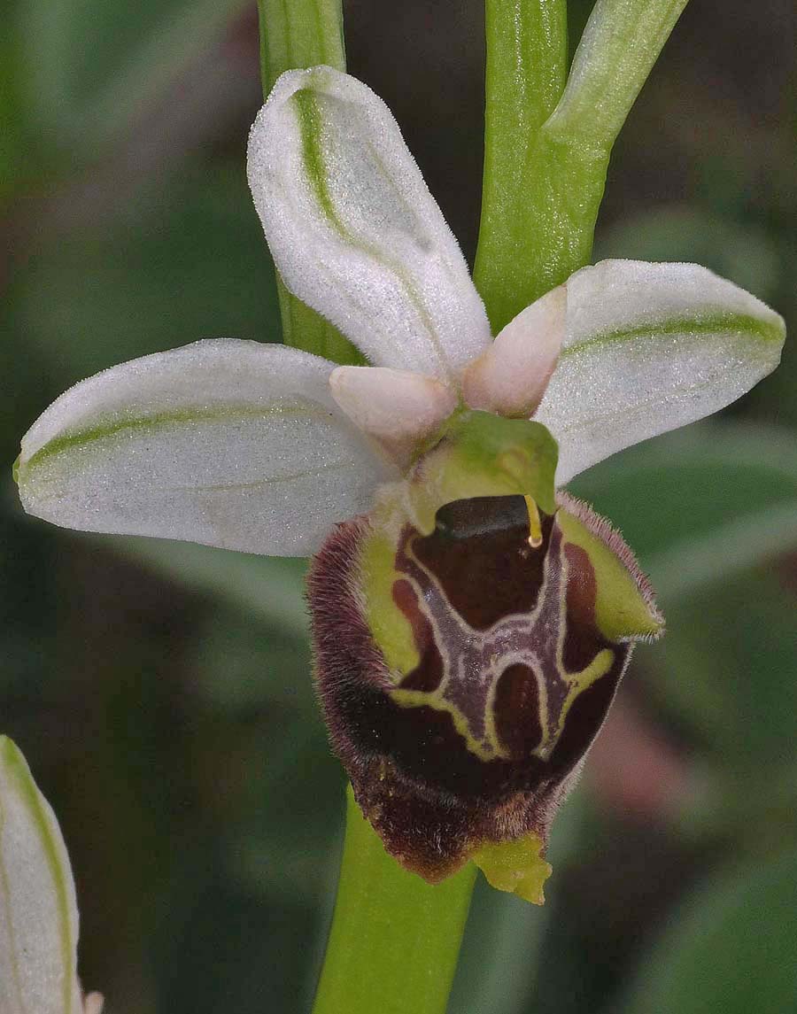 O. serotina was first described from Frosinone, Italy in 2000 and its name refers to the late flowering period of the species. It is a member of the 13 strong O. tetraloniae group which takes its name from the Tetralonia genus of bees that comprise the most significant pollinators of this family of Ophrys. Several of the species are to be found in the Mediterranean regions of southern France and the northern half of peninsula Italy where natural variation and hybridisation cause considerable problems in distinguishing the various species. It seems highly probable that this group has a polyphyletic origin encompassing genetic input from several other groups and this would certainly account for the high degree of morphological variability. As far as was thought, O. serotina could only be found very locally in central Italy but although its precise range is still not known with certainty, it has now been established that it occurs more widely, including far northern Italy and southern France. Identifying key characteristics that can yield a certain diagnosis is difficult and there are few features that could not be equally indicative of other group members. The appendage is extremely well developed and multi-toothed. The column is usually elongated. The basal swellings are prominent, hairless and yellow on the inside face. The lip is globular and generally slightly scolopaxoid with a bold speculum that is often candicoid (with thick white lining). Petals variable but often quite long (up to 5mm). The illustrations are from the central Appenines of Umbria and Abruzzo dating from the end of May. |