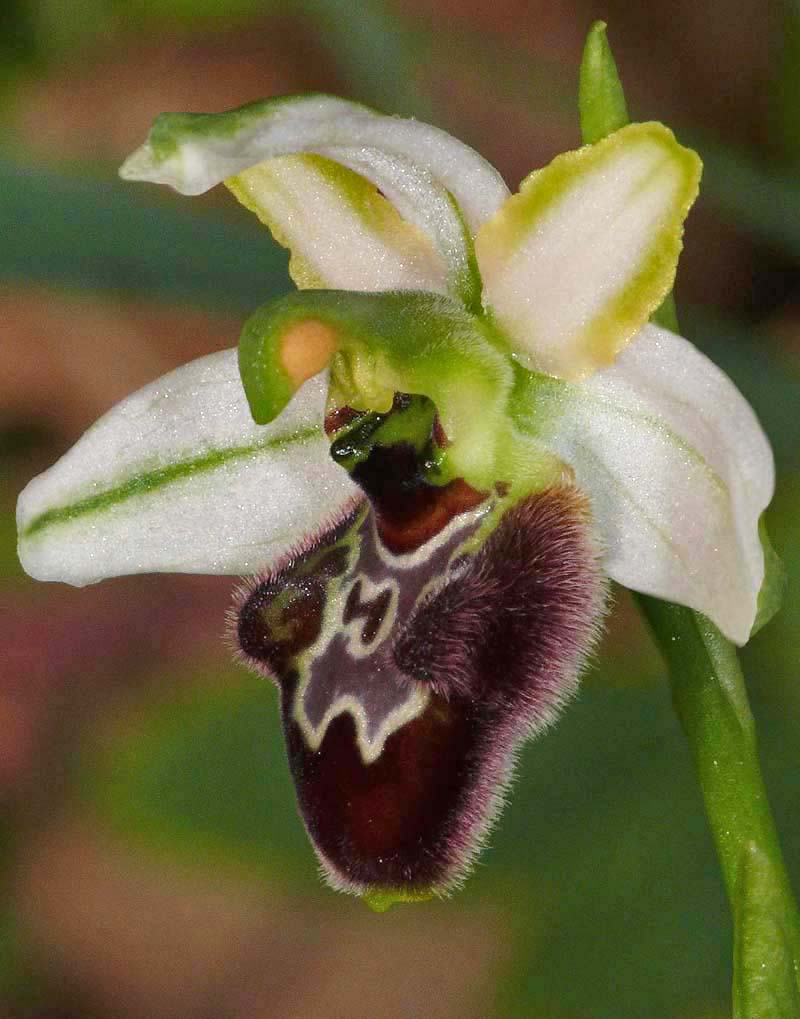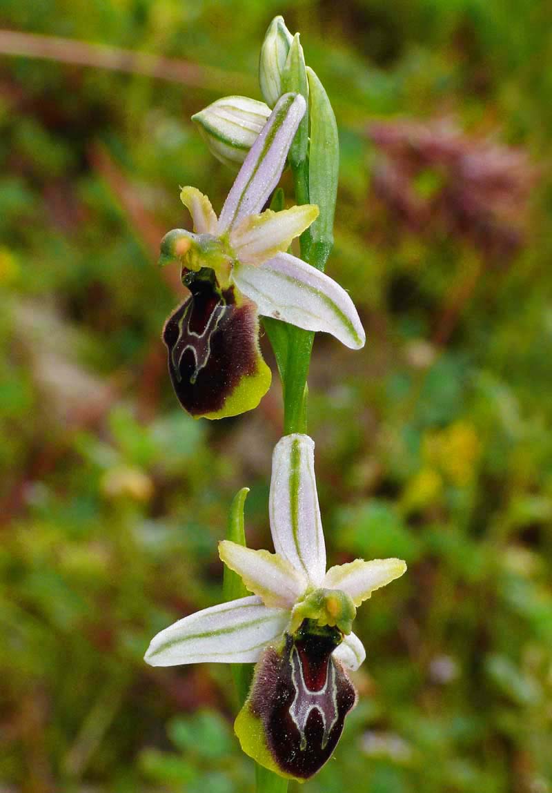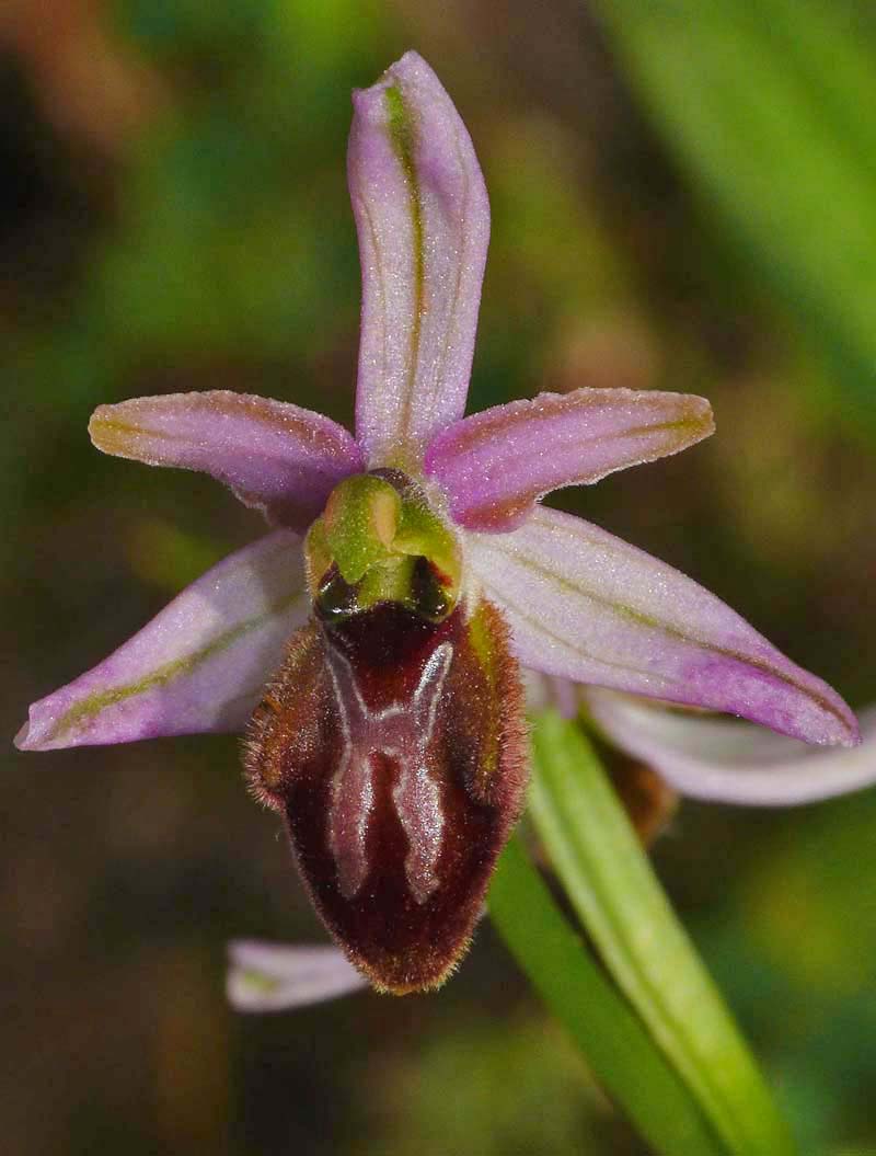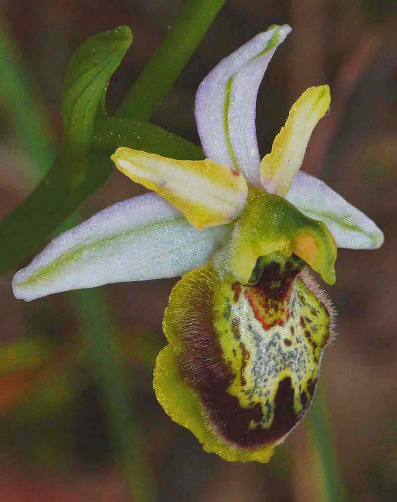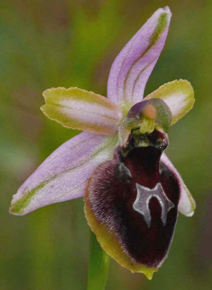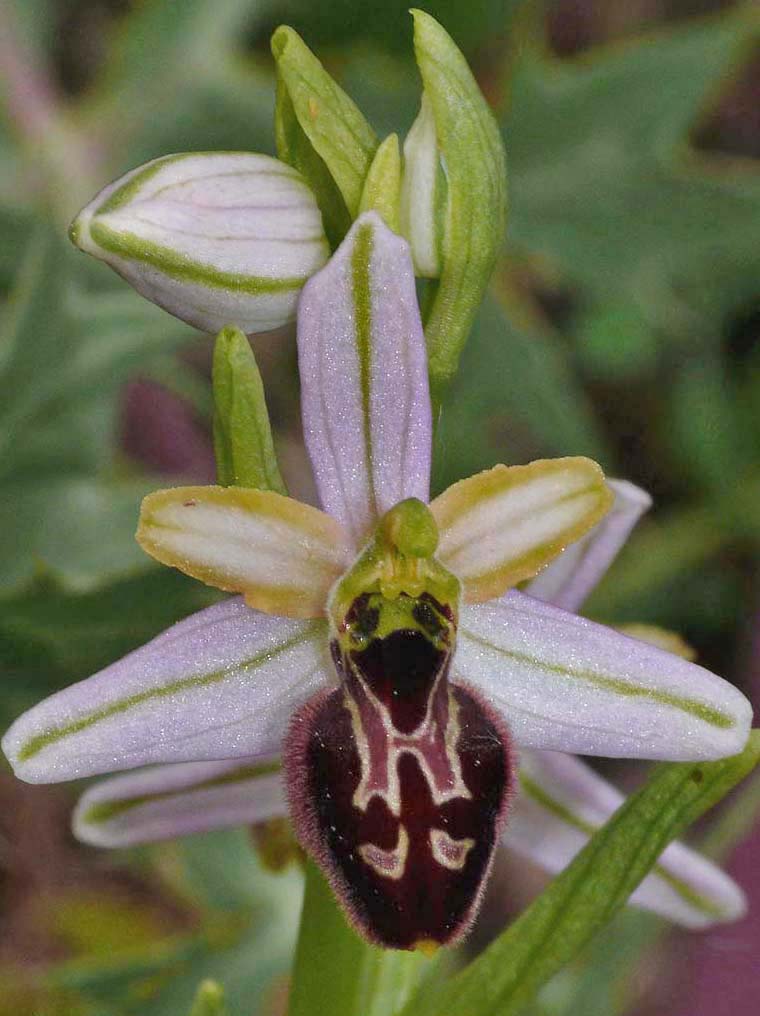 O. splendida was first described by Golz and Reinhard from Bouches-du-Rhone (France) in 1980 and its name means nothing more or less than splendid (its common name is the Brilliant Orchid). This is a member of the interesting O. incubacea group and has a restricted distribution in the Provence region of southern France, mainly centered on Var. A population of similar plants have been found in the north of France in Normandy but these are not thought to be naturally occurring and probably the result of a mischievous introduction. In its southern strongholds it's somewhat localised but can be found in good numbers in its favoured locations. O. splendida can thrive in a range of conditions but always on calcareous soils and usually in grassland and woodland clearings in full sun. Its a distinctive Ophrys and despite some natural variability is unlikely to be confused with any other species. The sepals are virtually always pale and usually white with strong green veining. Picture 4 depicts a rare example with pink sepals (very possibly a hybrid). The petals are generally concolourous or pale pink and often exhibit yellow to orange margins. The lip is usually entire with a submarginal band of dark hair and a broad yellow, hairless margin. The stigmatic cavity has a broad, lime-green specular stage that often reaches and sometimes encompasses the dark pseudo-eyes. Basal swellings may be absent or well developed. The photographs all come from the area around Bagnols-en- Foret (Var) and date from the second and third weeks of May.. |