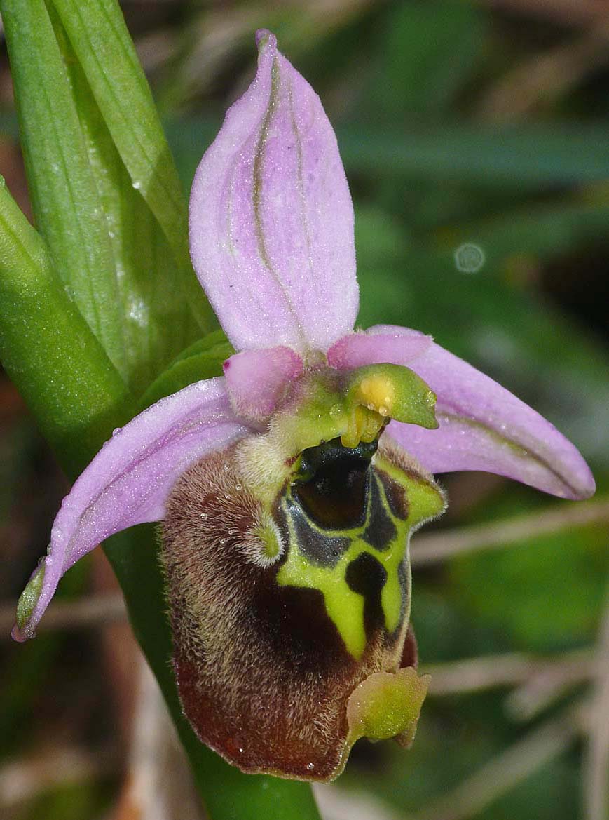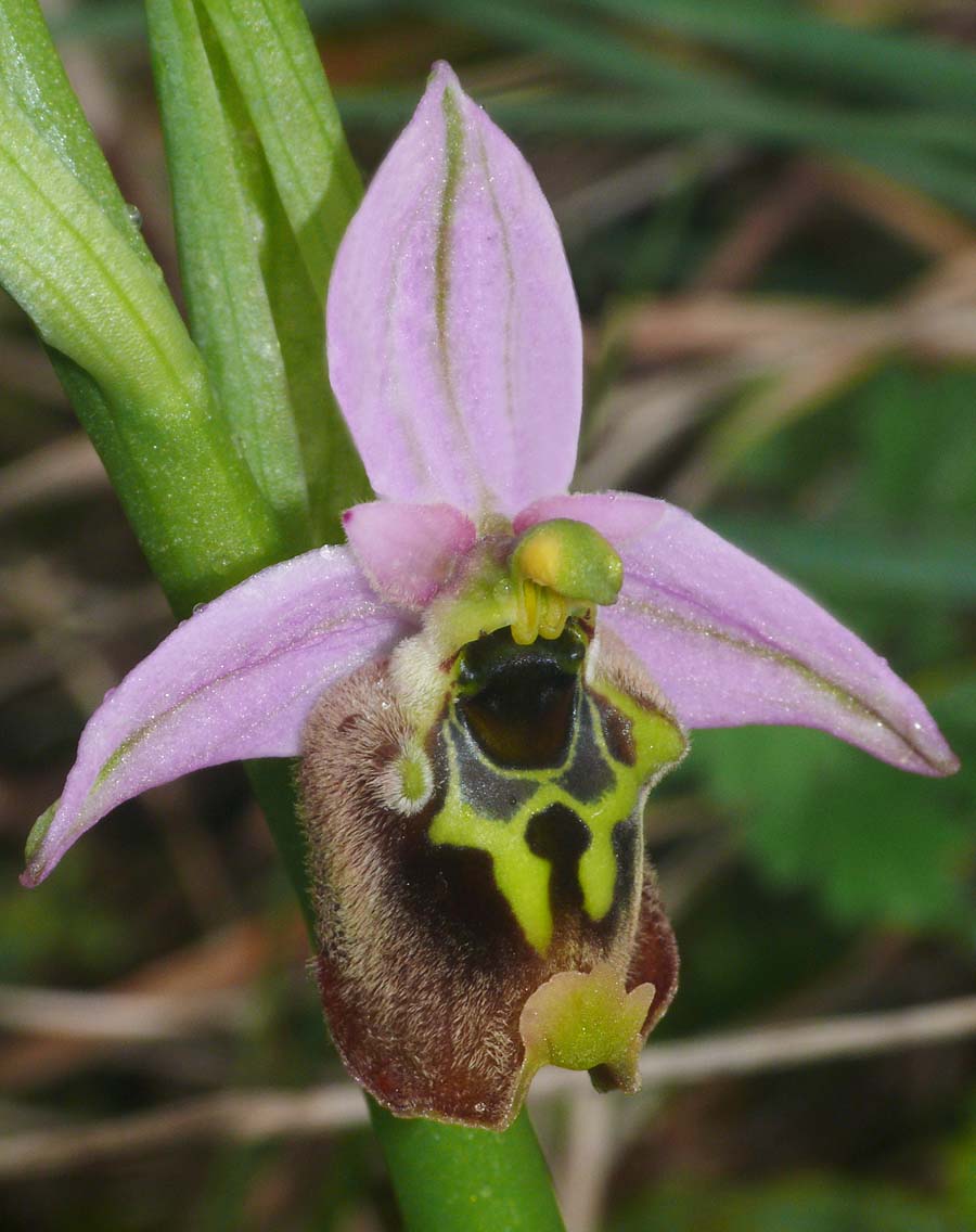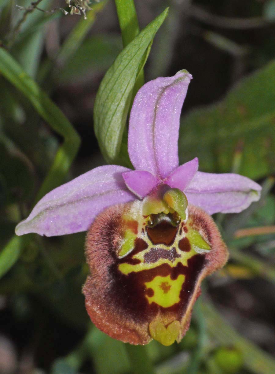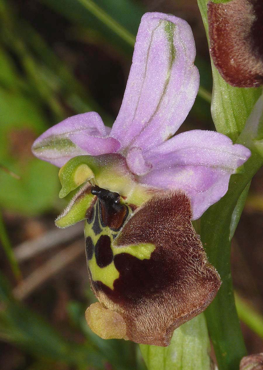 O. taloniensis was first described as a subspecies from Crete by Kreutz in 2007 and subsequently promoted to a full species. It is a member of the widespread and largely Eastern Mediterranean based O. bornmuelleri group of Ophrys. Up until the turn of the 20th century most authorities believed the O. bornmuelleri group on Crete was only represented by O. episcopalis and that there were separate populations of an earlier flowering Ophrys which had become known as O. maxima (recently reclassified as O. colossaea on Rhodes). Research by Paulus and Hirth in 2009 confirmed that in fact both the early and late species shared the same pollinator and were therefore a single taxon. This view was later reinterpreted by Kreutz and he formally described O. taloniensis as the early flowering new species. A further member of the group has also been recognized from the island and this is the late flowering O. helios. On Crete, there are therefore three similar Ophrys which are difficult to separate except by size and phenology. O. taloniensis flowers from mid March and is the smallest flower, O. episcopalis appears in early April and is significantly the largest flower, O. helios commences in mid April and is mid-sized between the two others. It is entirely conceivable to visit Crete in April and encounter all three species in flower concurrently. O. taloniensis would however be in poor condition and the others just beginning. O. taloniensis and O. episcopalis are very variable, both appearing in scolopaxoid and trapezoid forms though the former is more often quadrangular, with less flared lip margins. It is also generally duller and browner than the sometimes extravagantly coloured O. episcopalis. The pictures date from the first week of April. |