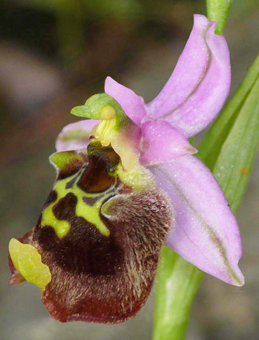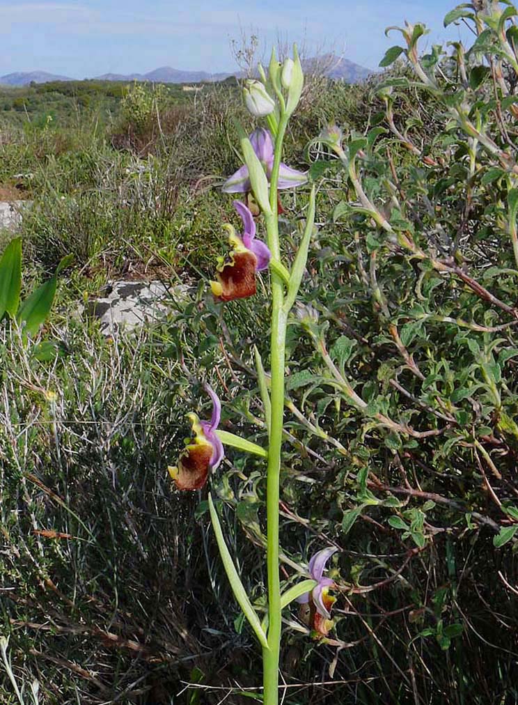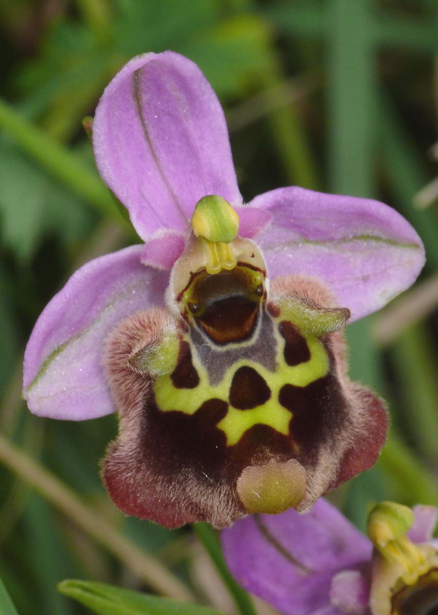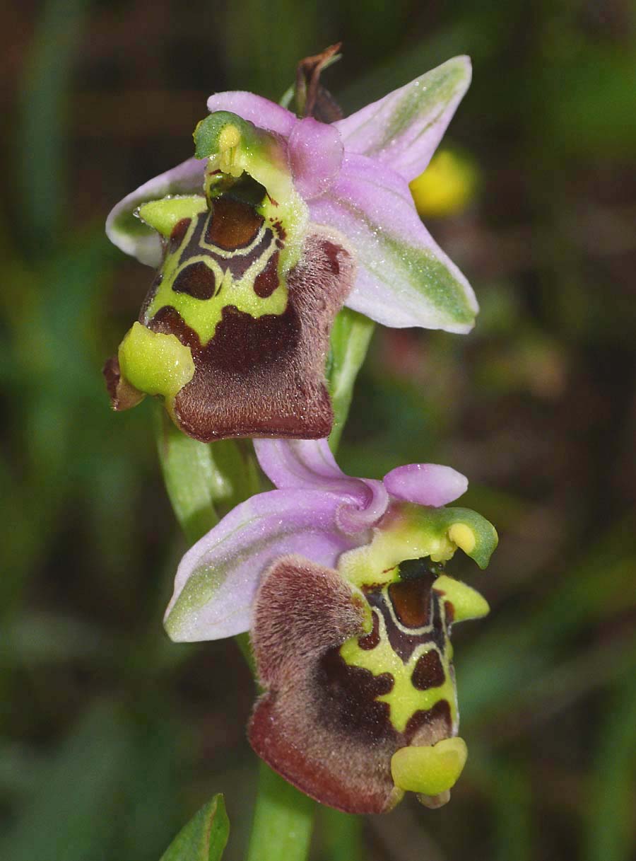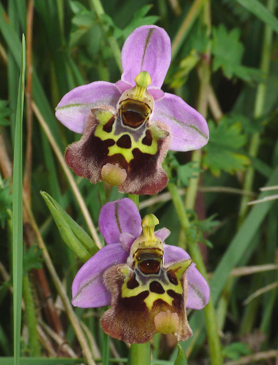 O. taloniensis was first described as a subspecies from Crete by Kreutz in 2007 and subsequently promoted to a full species. It is a member of the widespread and largely Eastern Mediterranean based O. bornmuelleri group of Ophrys. Up until the turn of the 20th century most authorities believed the O. bornmuelleri group on Crete was only represented by O. episcopalis and that there were separate populations of an earlier flowering Ophrys which had become known as O. maxima (recently reclassified as O. colossaea on Rhodes). Research by Paulus and Hirth in 2009 confirmed that in fact both the early and late species shared the same pollinator and were therefore a single taxon. This view was later reinterpreted by Kreutz and he formally described O. taloniensis as the early flowering new species. A further member of the group has also been recognized from the island and this is the late flowering O. helios. On Crete, there are therefore three similar Ophrys which are difficult to separate except by size and phenology. O. taloniensis flowers from mid March and is the smallest flower, O. episcopalis appears in early April and is significantly the largest flower, O. helios commences in mid April and is mid-sized between the two others. It is entirely conceivable to visit Crete in April and encounter all three species in flower concurrently. O. taloniensis would however be in poor condition and the others just beginning. O. taloniensis and O. episcopalis are very variable, both appearing in scolopaxoid and trapezoid forms though the former is more often quadrangular, with less flared lip margins. It is also generally duller and browner than the sometimes extravagantly coloured O. episcopalis. The pictures date from the first week of April. |