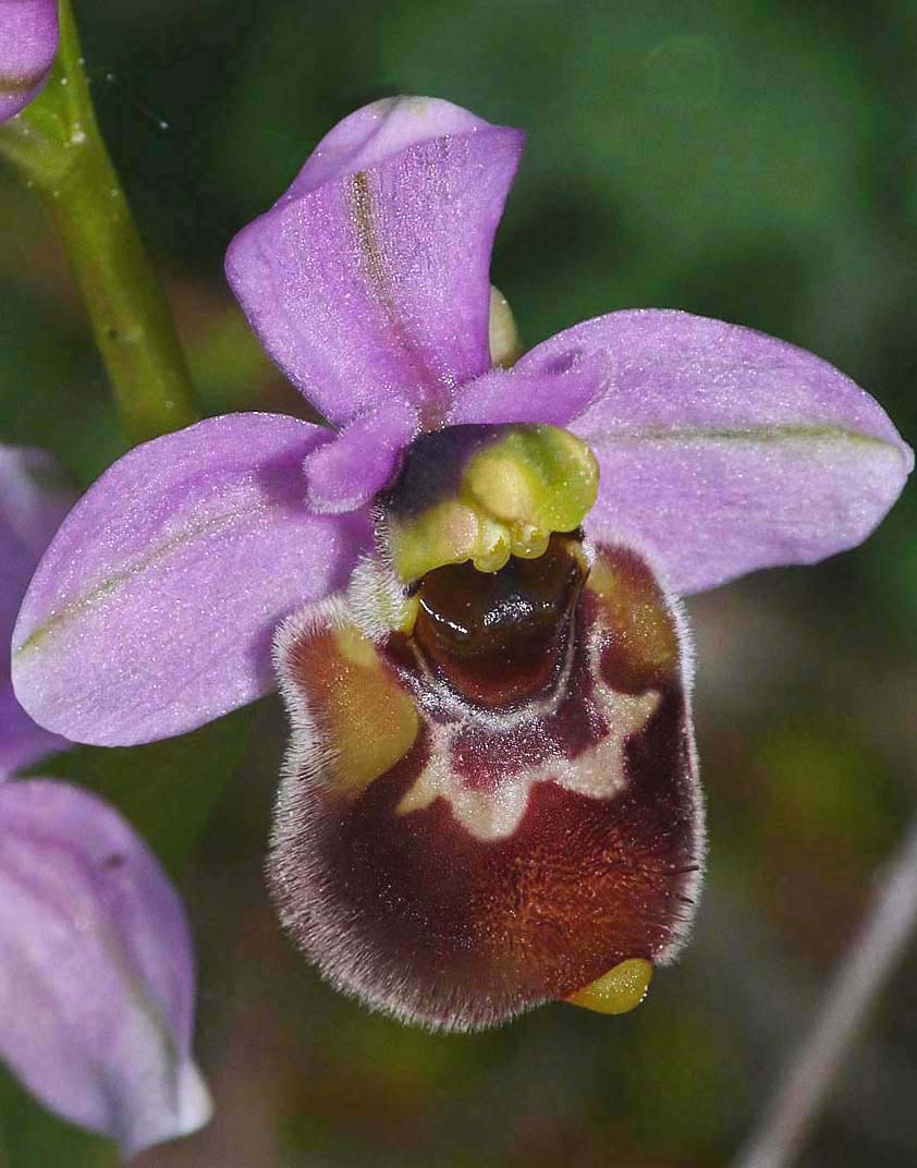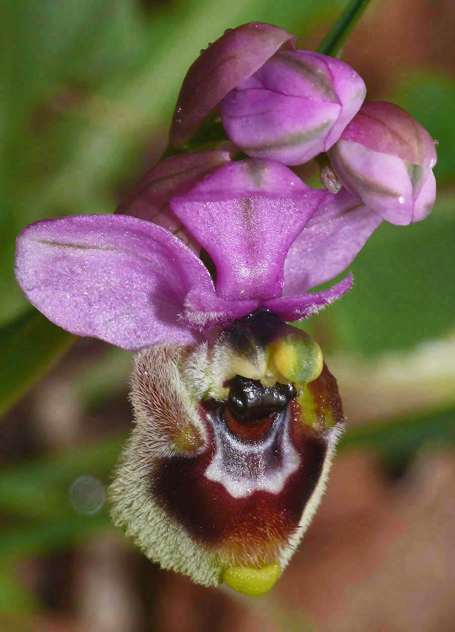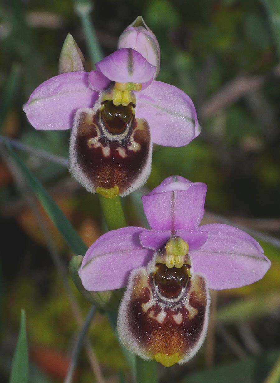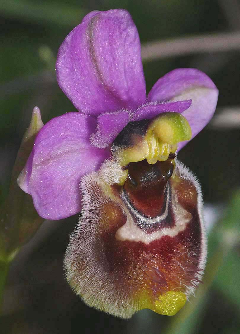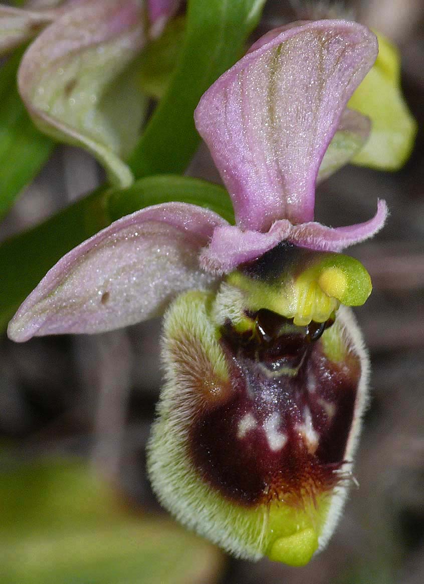 Its range is reported as being restricted to southern Puglia and most particularly to the Province of Lecce centred on the coastal town of San Cataldo. Whilst it was once quite common here, it is becoming less frequent in a region where tourist development and agriculture are increasingly making orchid habitat scarce. O. tardans is a stabilized hybrid between O. candica and O. neglecta and as is usual with such hybridogenous species, the individual characteristics of each progenitor are exhibited in varying proportions. O. neglecta is a small flower whereas typically O. tardans is medium sized with a browner lip and an extended speculum. This speculum enlargement can take various forms and be more or less obvious but almost always involves some cream/whitish candicoid markings. These features reinforce the view that O. candica. is one of the original gene contributors. It is notable however that this latter species has not in recent times been found at any of the small number of sites known to be home to O. tardans. Photos 5 to 10 come from an area significantly outside of the species recognized range in southern Puglia as they originate some 250kms north west of San Cataldo in Campobssa. It may be that these are occasional hybrids which have not evolved unique pollinators, they are nonetheless indistinguishable from O. tardans. The remaining photos are from San Cataldo and all date from the last two weeks of April. |