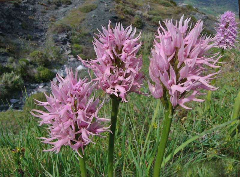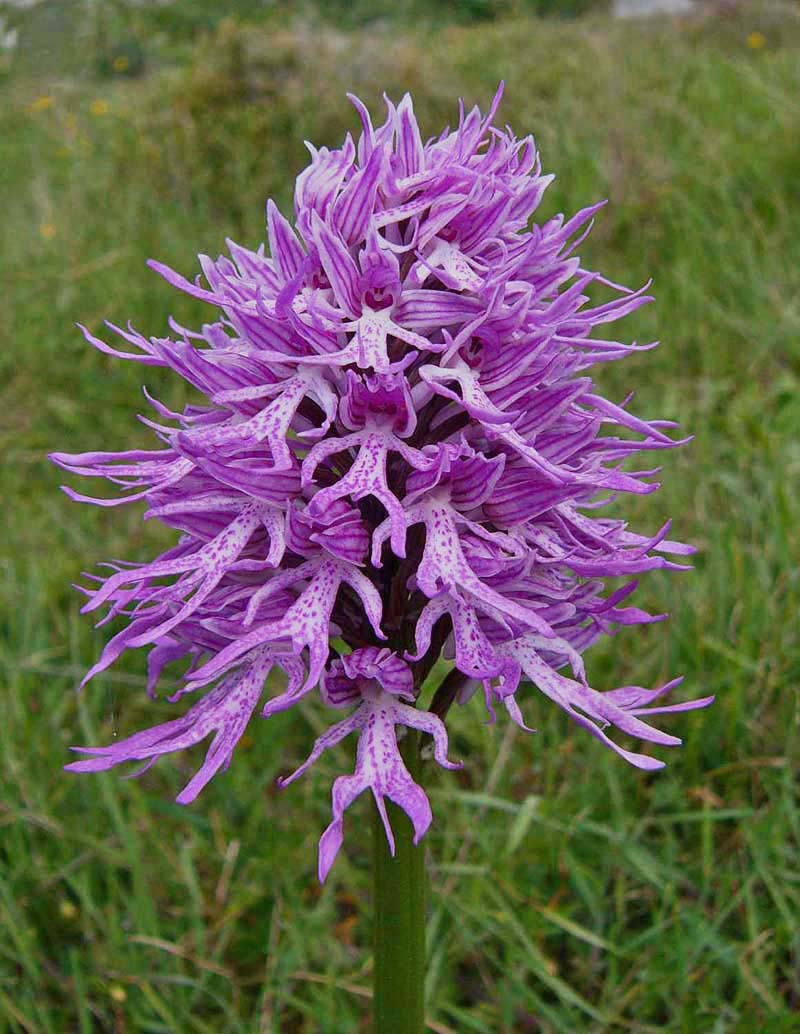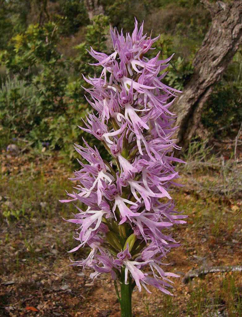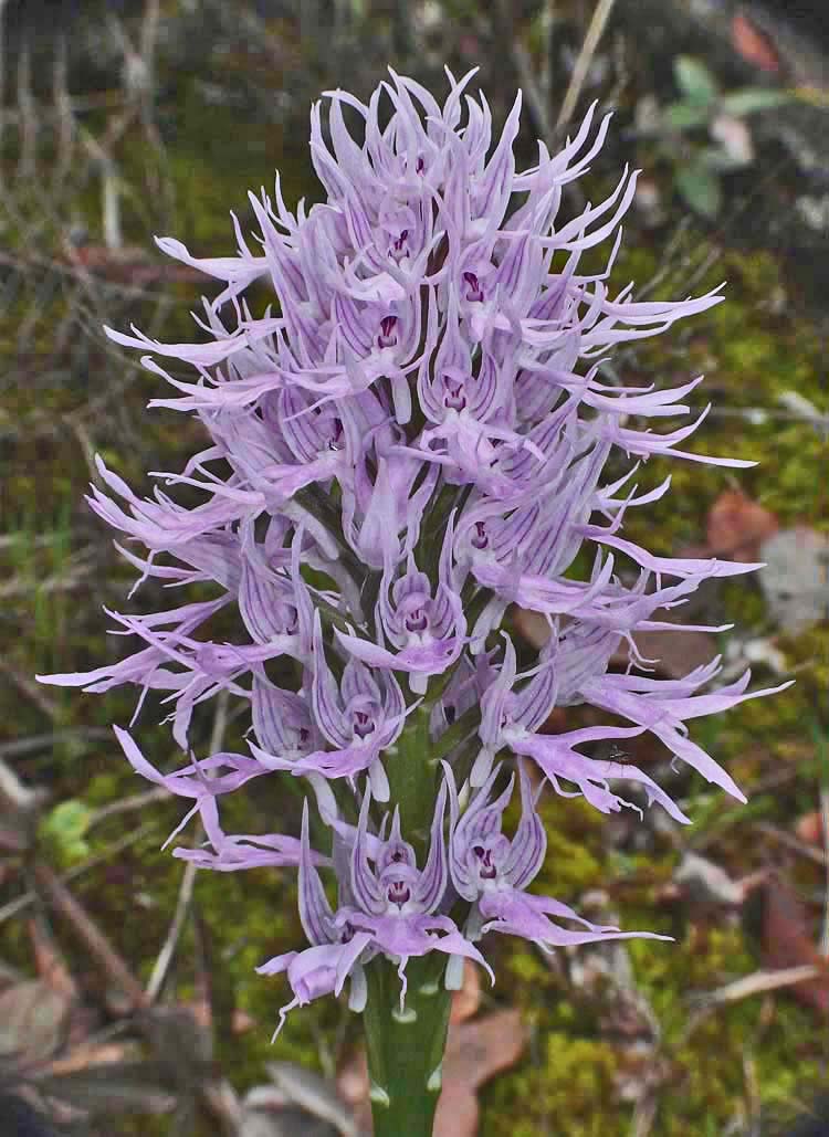 is a member of the O. militaris group and commonly known as the Naked Man Orchid, a reference to the general outline of the flower.
