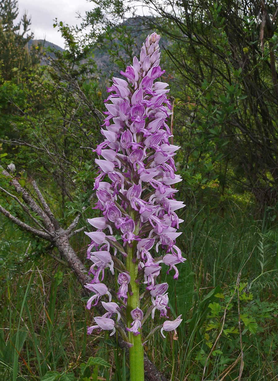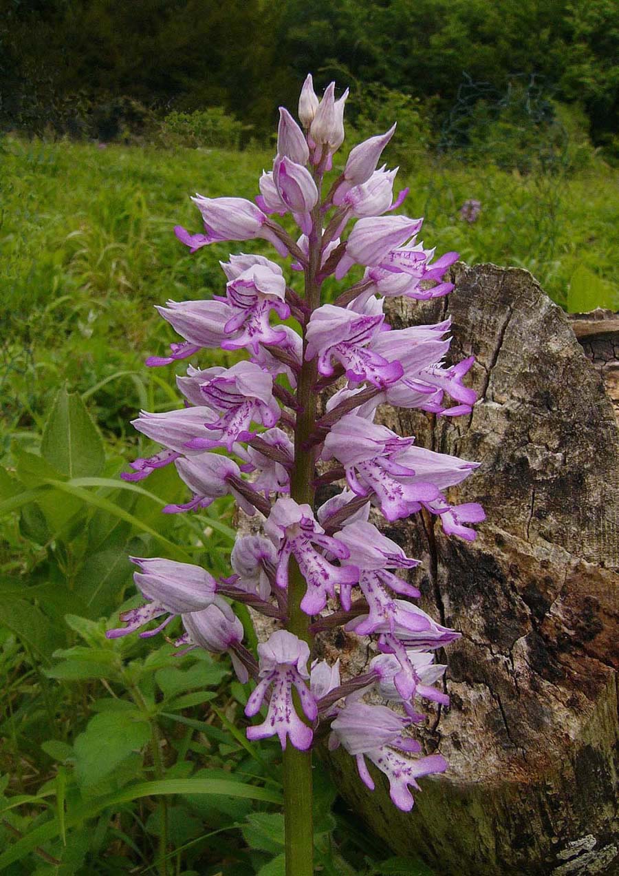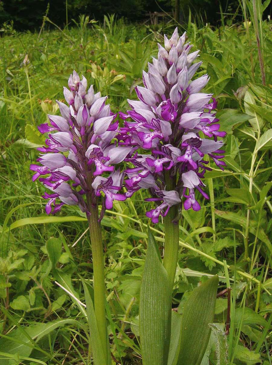 This widespread but handsome orchid was first described from Germany in 1753 and its name refers to the helmeted, soldier like appearance of the individual flowers. Despite its huge Euro-Siberian range it is a local species, although abundant in its favoured sites in continental Europe. The distribution of O. militaris takes it from Britain in the north, through the northern Mediterranean to Russia in the east. It is at its least common in the Mediterranean regions and also in the UK where it was thought to have become extinct in 1914. The story of J. E Lousley's picnic and its consequent rediscovery in Britain is well known but since that day in 1947, O.militaris has been closely protected. The need for this plants protection was regrettably stressed again recently when a dozen plants were dug up and stolen from its biggest and best known Buckinghamshire colony by a wretched collector. Happily the species is now also being preserved in a few other less well known sites. Its habitat requirements are varied and whereas in Britain it is exclusively a chalk downland plant, there are colonies in France and Switzerland that thrive in marshes with their feet quite literally in standing water. In continental Europe where O. militaris grows in huge numbers with both O. simia and O. purpurea, hybridization is common and the resultant progeny can appear in bewildering and often highly attractive variety. The illustrations are from the Chilterns (UK), France and Italy, dating from the month of May. Photo 12 is one of the marsh growing plants from Chirens in Southern France. |