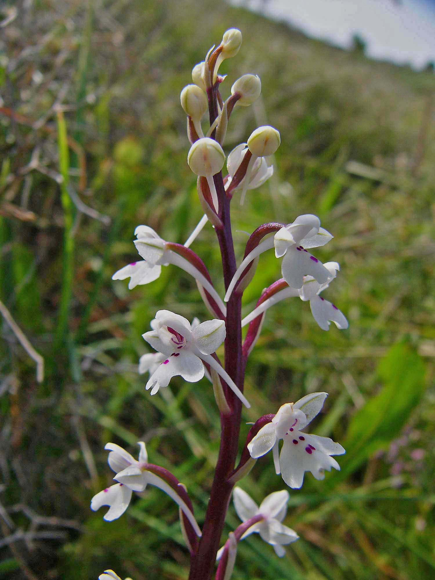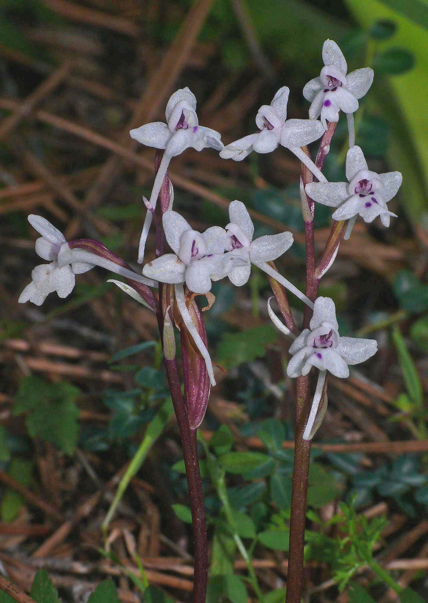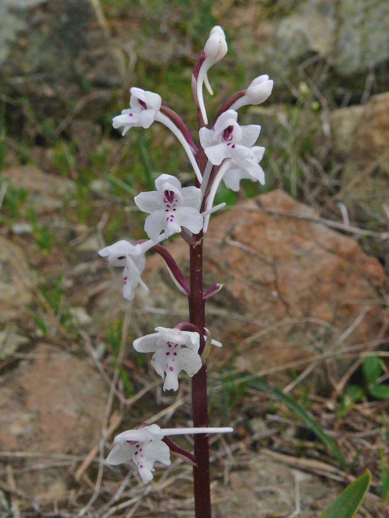 depending on the region in which it is found. The question at issue is whether or not these hybrids have sufficiently stabilized to be regarded as a species in their own right. The prevailing view seems to be that where O. sezikiana occurs, its parents are generally in close enough proximity to discount the possibility of the hybrid being seen as leading a truly independent existence. As has already been mentioned O. sezikiana is a heterogeneous taxon where the presence of four potential gene donors dictate the plants distribution. Its range is centred on Crete, Cyprus and Anatolia where it may be found growing (unsurprisingly) in similar habitat and aspect to that of O. quadripunctata. Given its hybrid background its appearance can be variable though it generally seems to possess more of the characteristics of O. quadripunctata. The main differences are usually to be found on the labellum where the central lip will contain more and heavier spotting, it may also show some different coloured blotching. The spur can be both straighter and heavier. The photos come from Cyprus where the plants are invariably white and Crete where plants may be white or pink. |