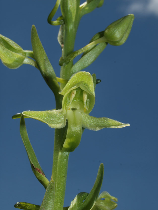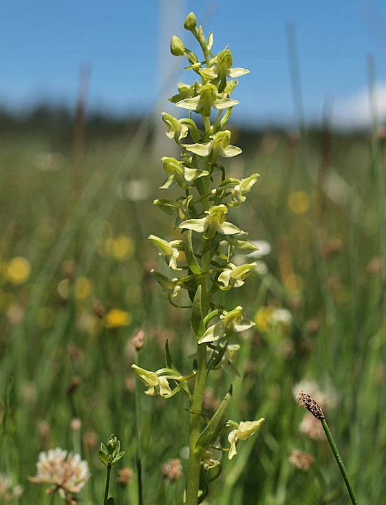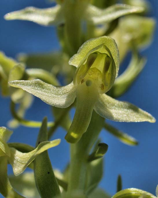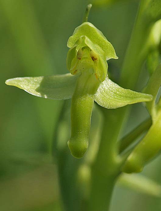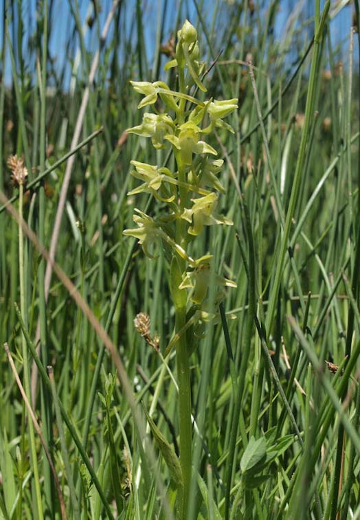 This is a rare species, similar in appearance to P. chlorantha apart from greener coloured flowers and it favouring a very different habitat. It grows in moist, acidic conditions, such as marsh, damp